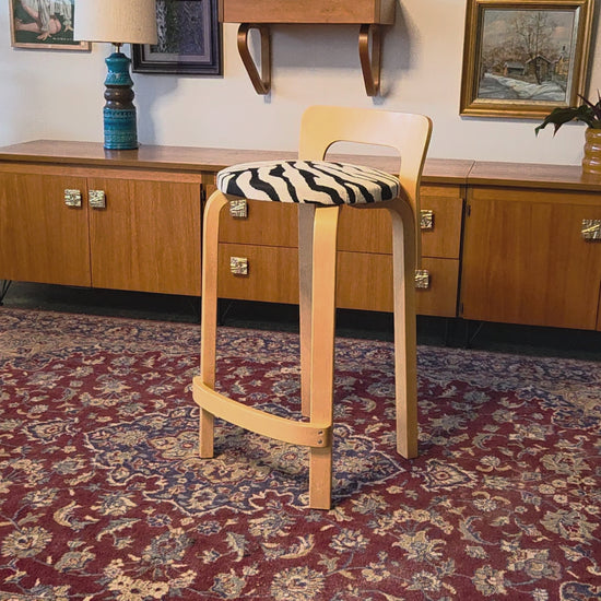 Artek K65 -baarijakkara, suomalaisen designin klassikko. Selkeälinjainen ja tukeva jakkara sopii täydellisesti keittiösaarekkeen, baaritason tai korkean pöydän ääreen.