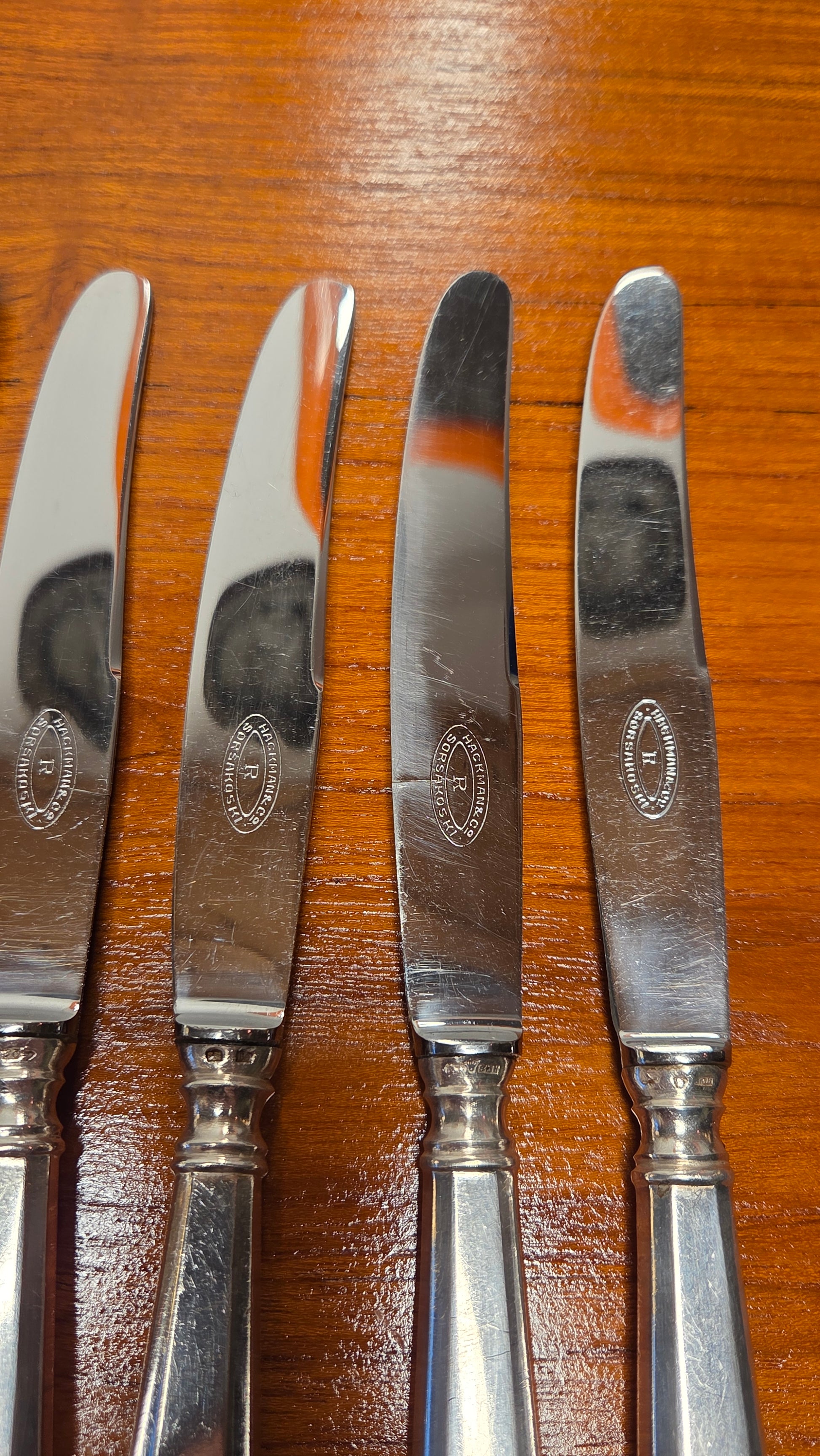Hyvä vintage-kunto. Käytön jälkiä ja kevyttä pintanaarmua iän mukaisesti. Veitsistä pienet ohuet halkeamat parissa kappaleessa ei vaikuta käyttöön. Näkyvät kuvissa
