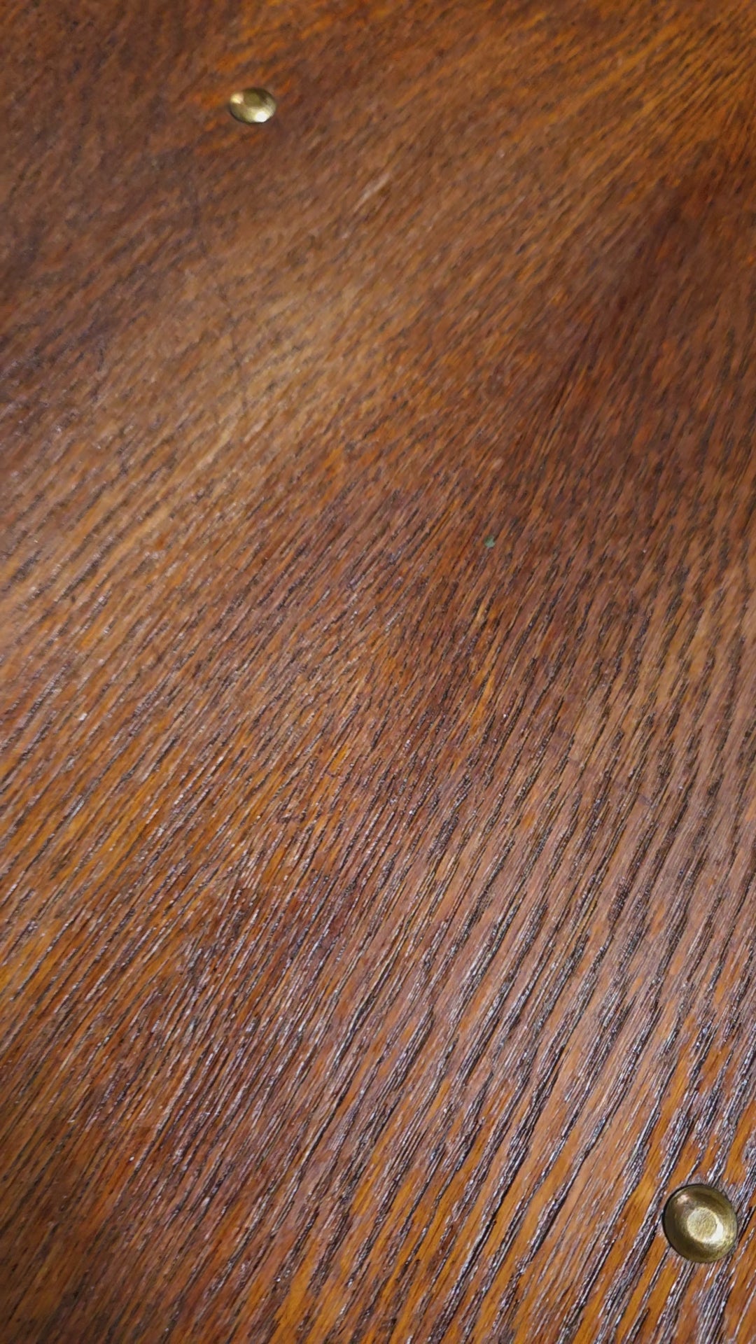 Ikään nähden hyvä. Normaalia käytön jälkeä ja patinaa viilupinnoissa, rakenteet tukevat.