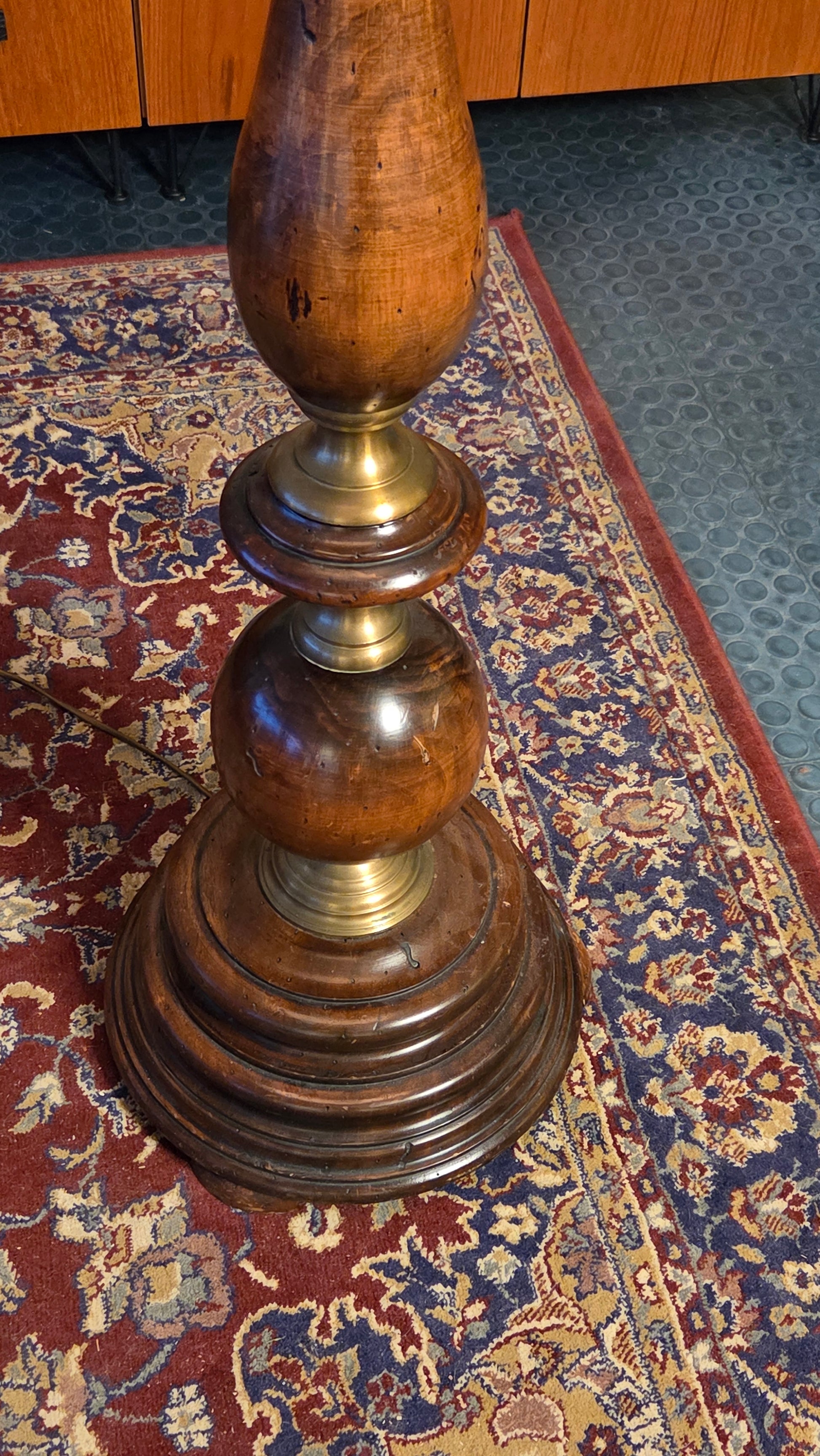 Näyttävä ja tunnelmallinen vintage-lattiavalaisin, jossa kierretty puurunko.