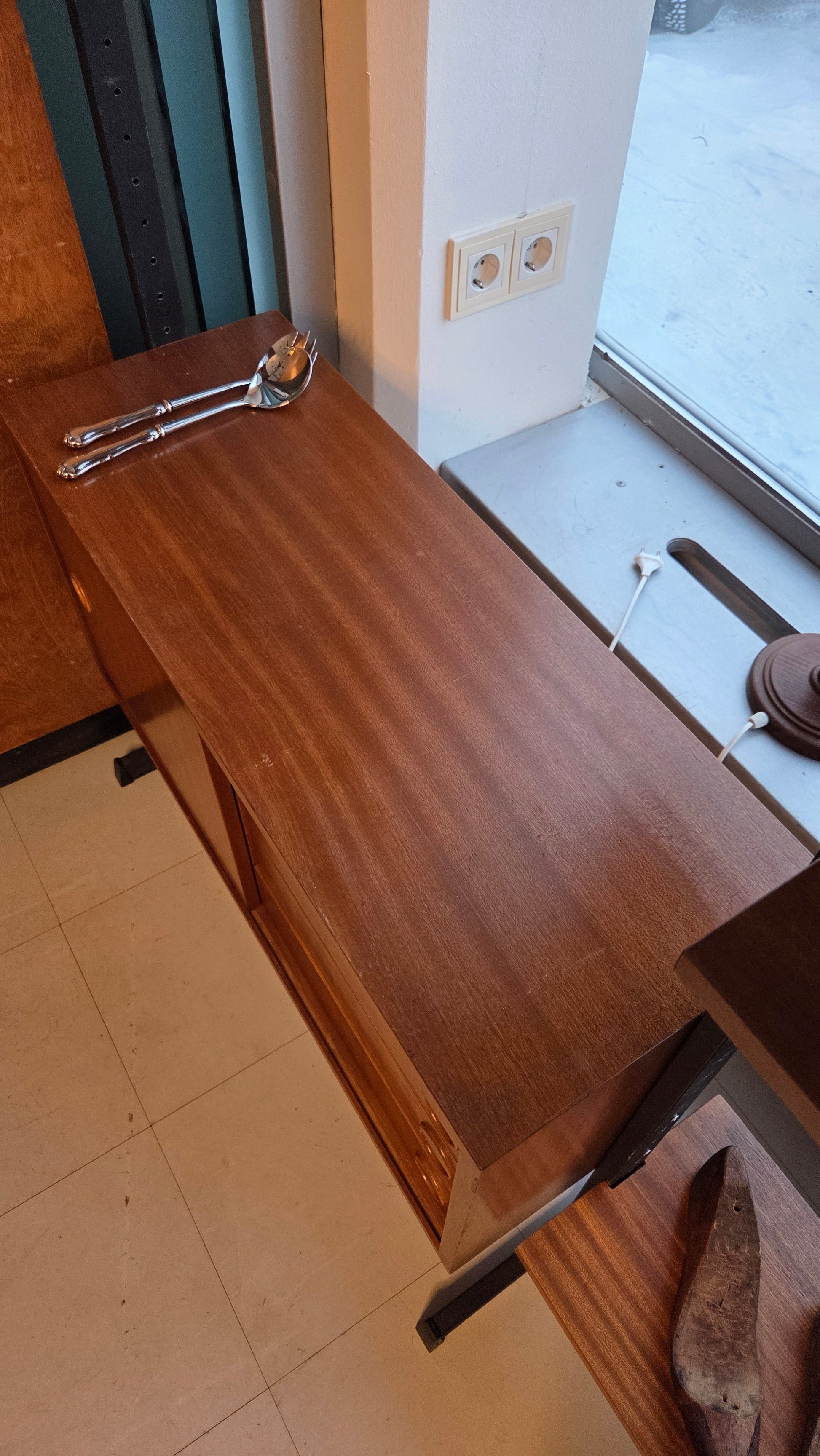 Hylly on hyvässä vintage-kunnossa, normaalia ikään liittyvää patinaa.