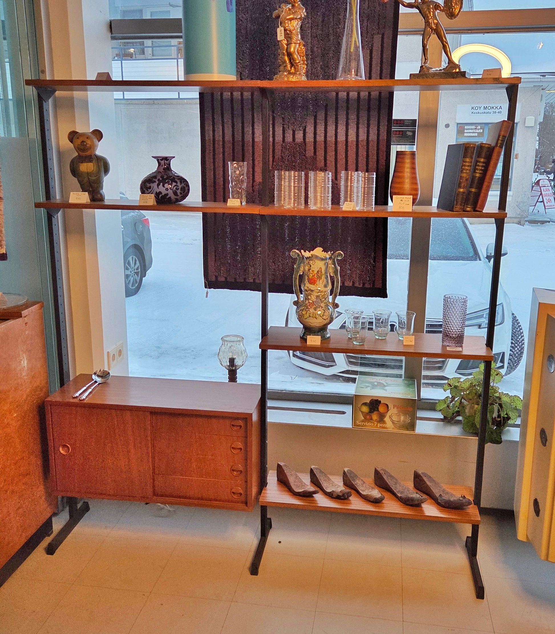 Kevyt mutta tukeva rakenne, useita tasoja esillepanoon.
