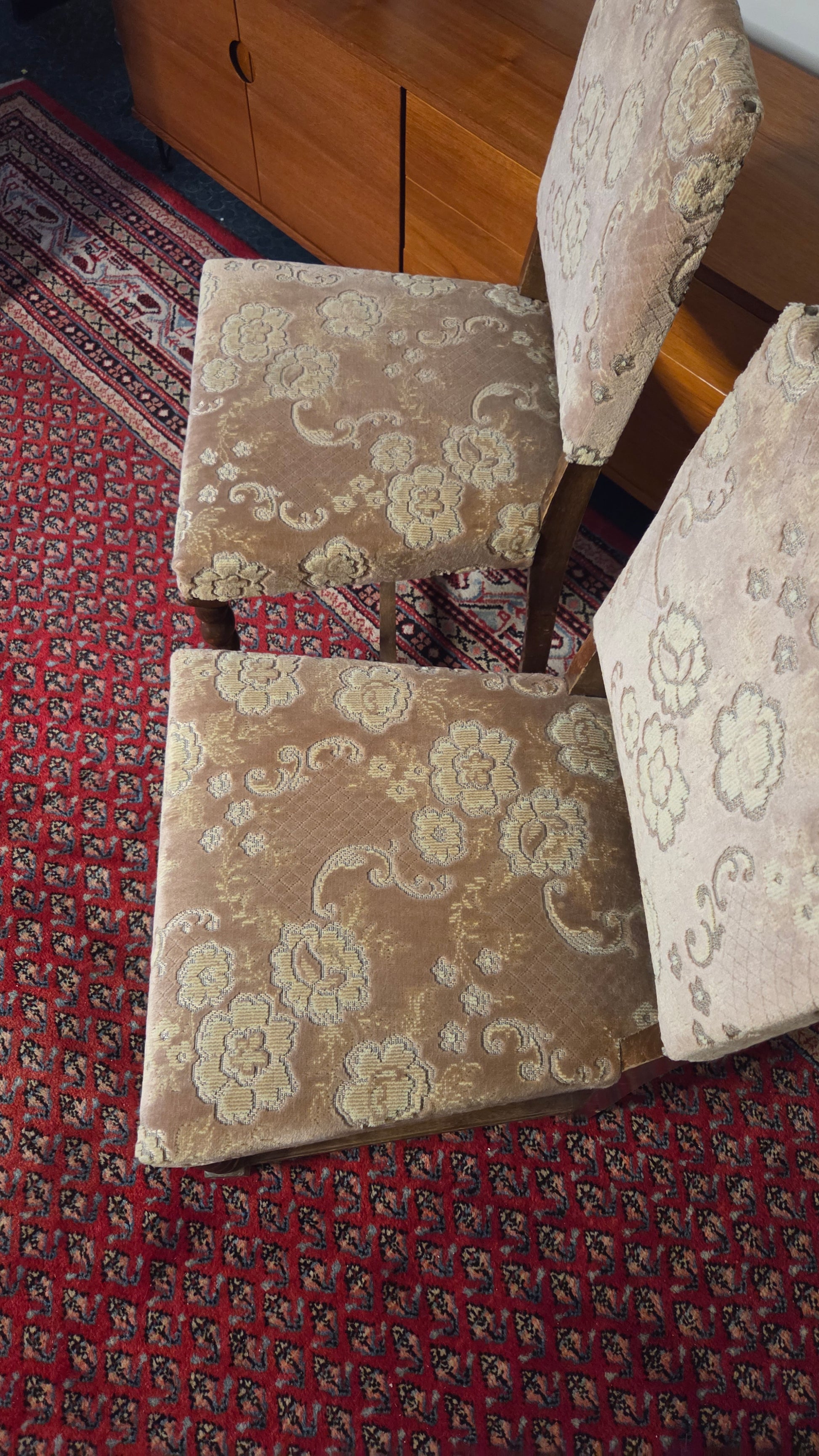 Hyväkuntoiset vintage tuolit todella siistillä verhoilulla.