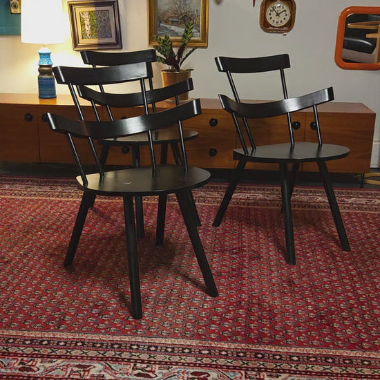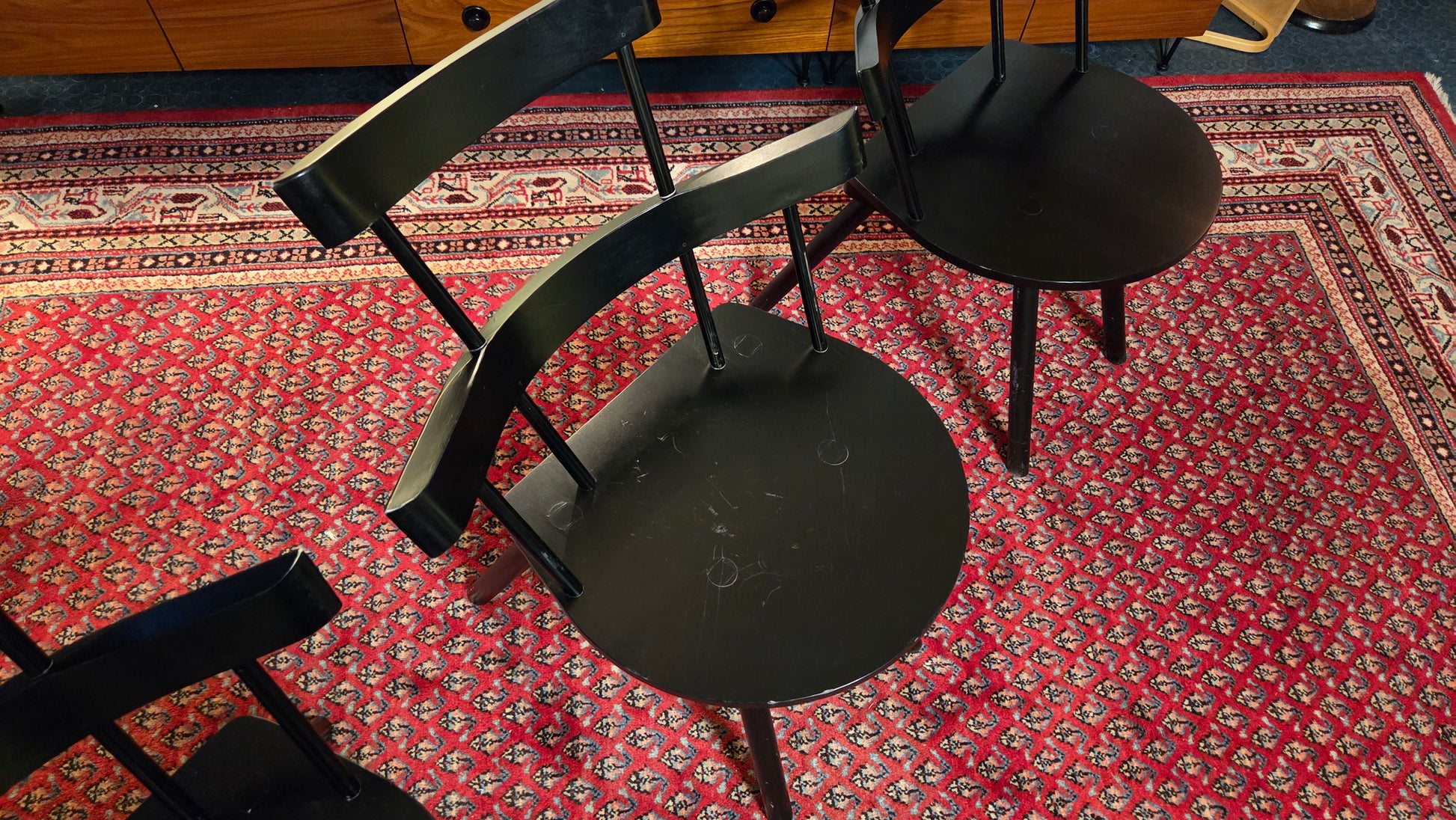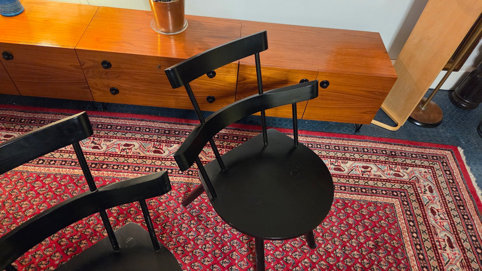 Tyylikäs Auvinen-Wiherheimon suunnittelema Jussi-nojatuoli, mustalla pintaviimeistelyllä.