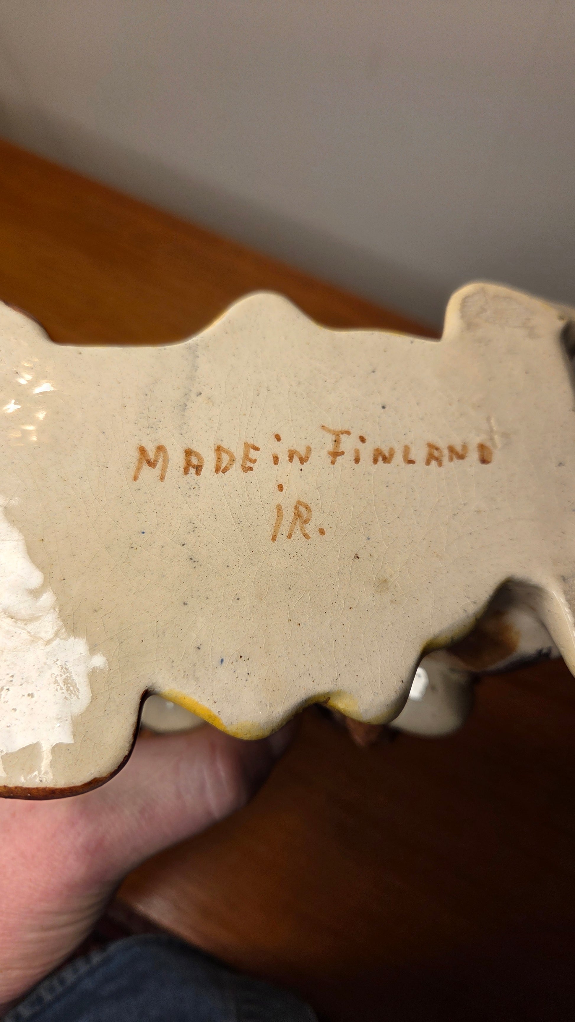 Tämä on upea lisä suomalaisten keräilykeramiikoiden kokoelmaan tai sisustukseen. Kupittaan Savin tuotanto on nykyään hyvin haluttua ja nämä isommat figuurit ovat harvoin tarjolla.