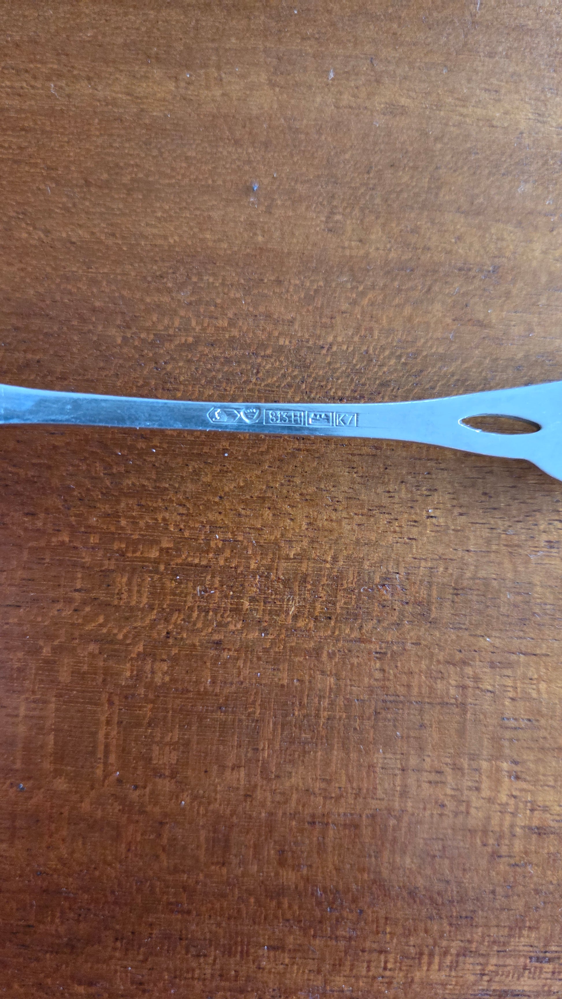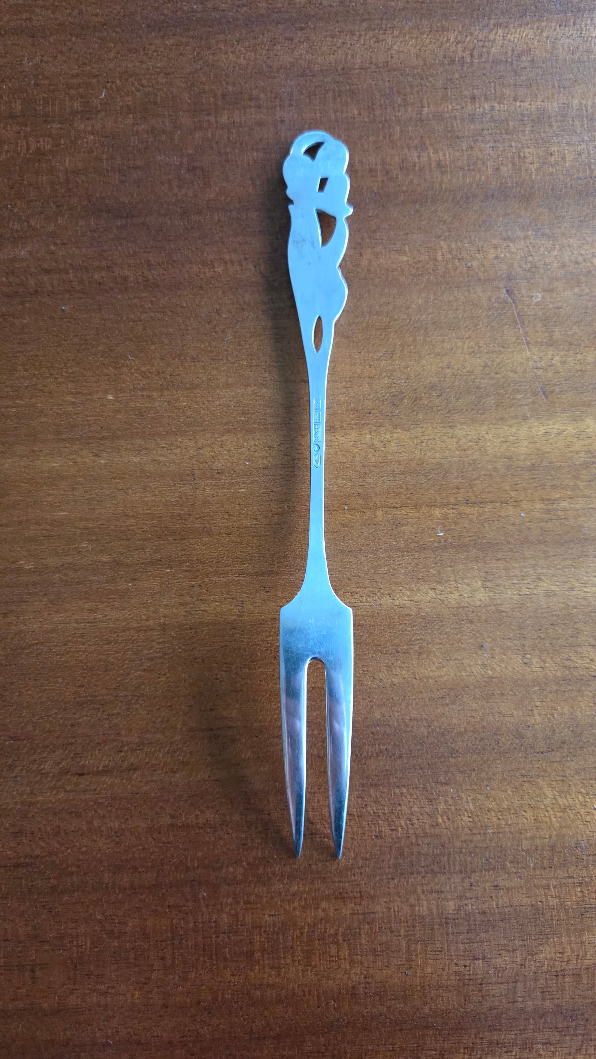Tyylikäs ja laadukas Kultakeskuksen valmistama leikkelehaarukka, leimattu 813H (vuosi 1963).