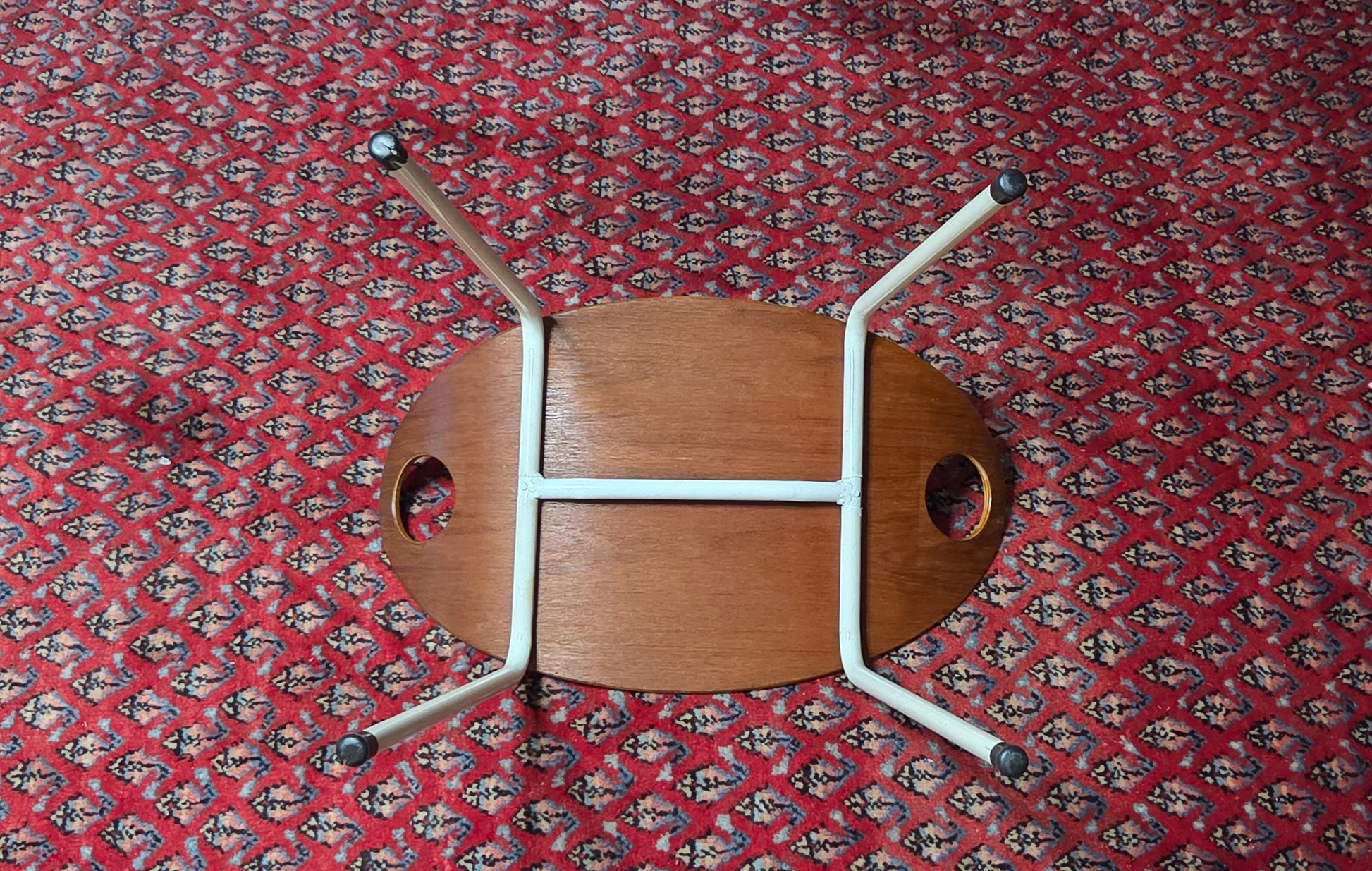 Ajaton suomalainen designklassikko, jossa yhdistyvät kevyt metallirunko ja kauniisti kaareutuva taivutevaneri-istuin.