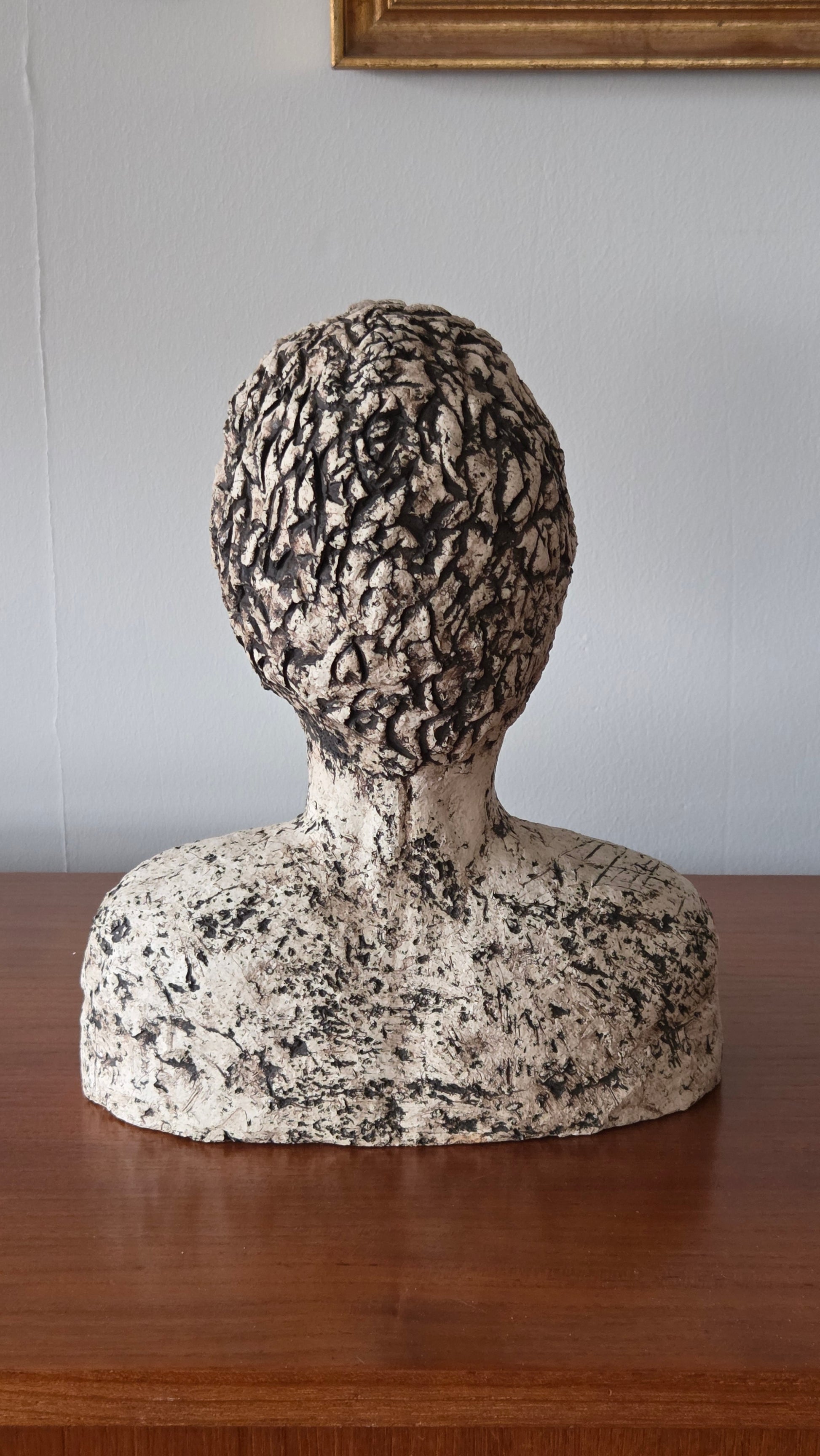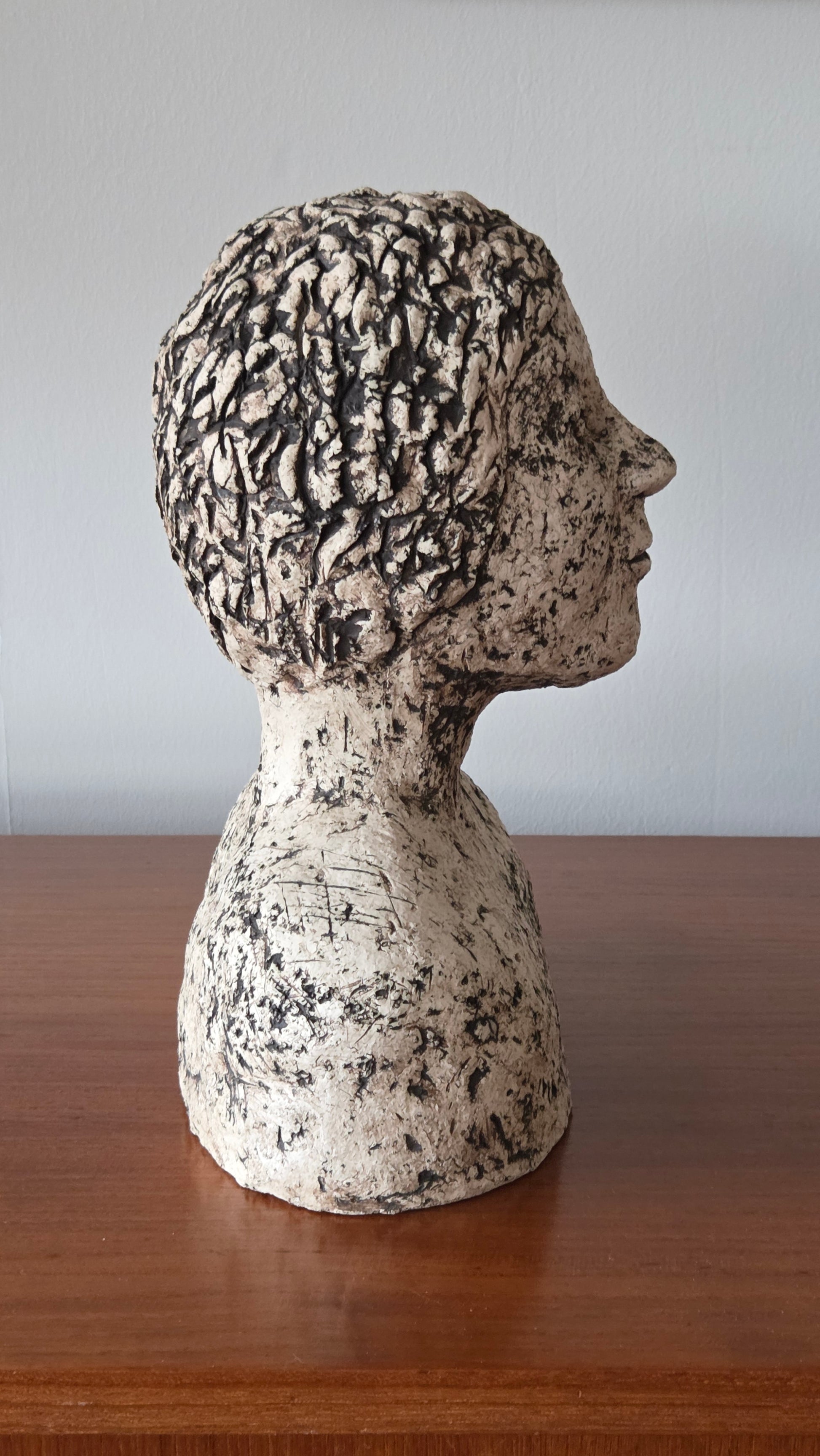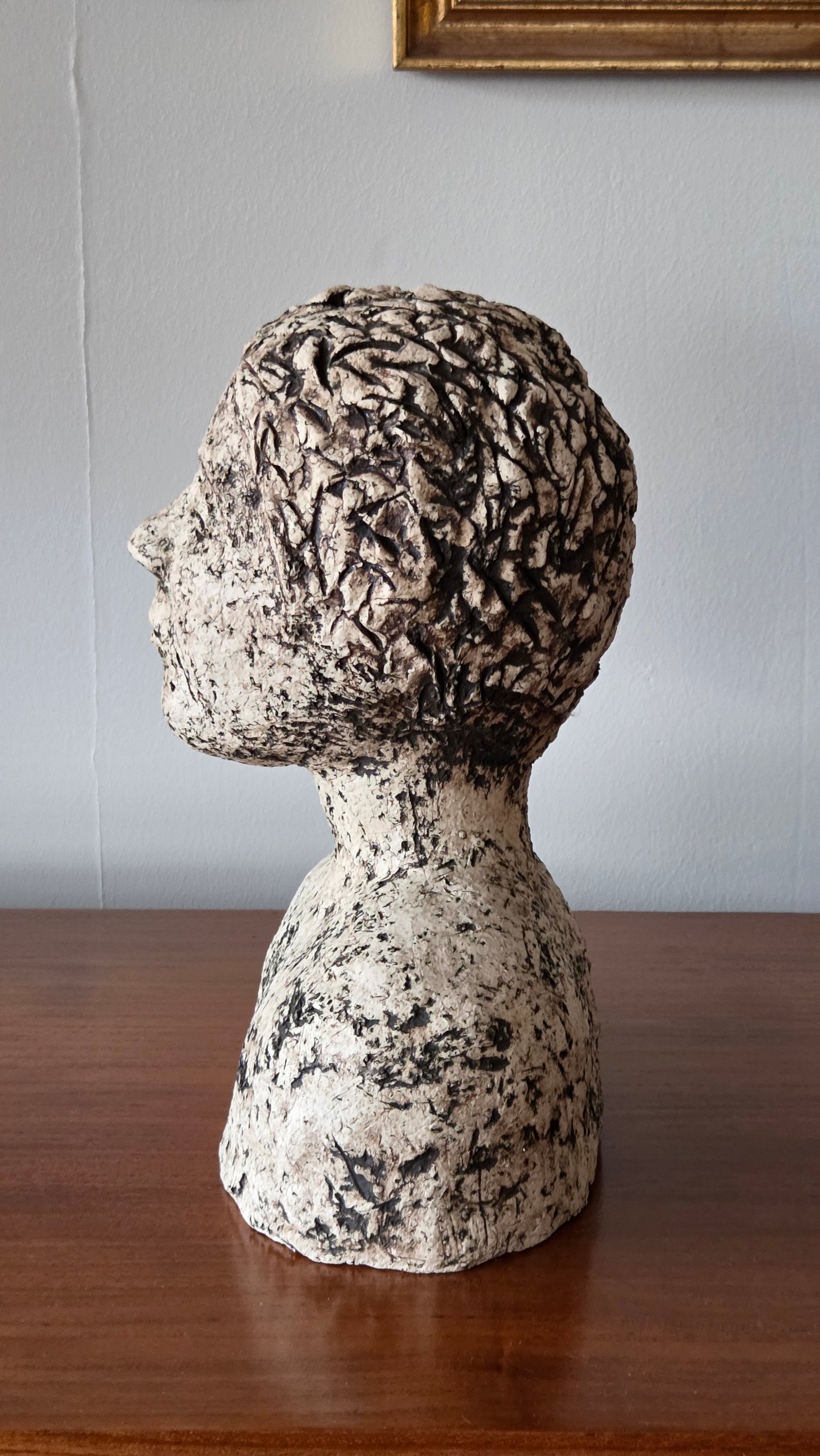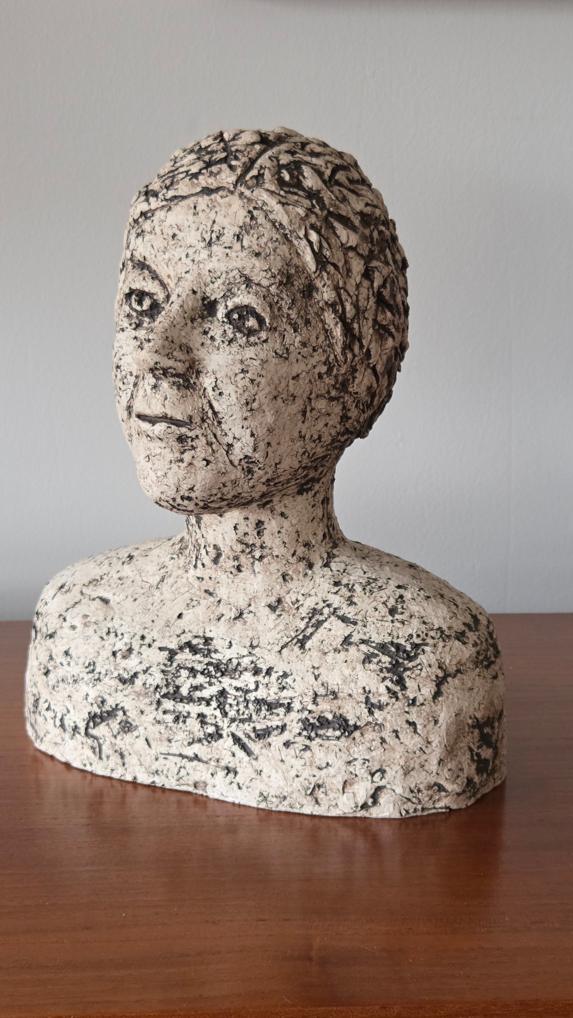 マルヤッタ・ルースカネンによる美しく表現力豊かな陶芸作品。力強い質感と緻密な表現で女性の胸像を描き出しています。