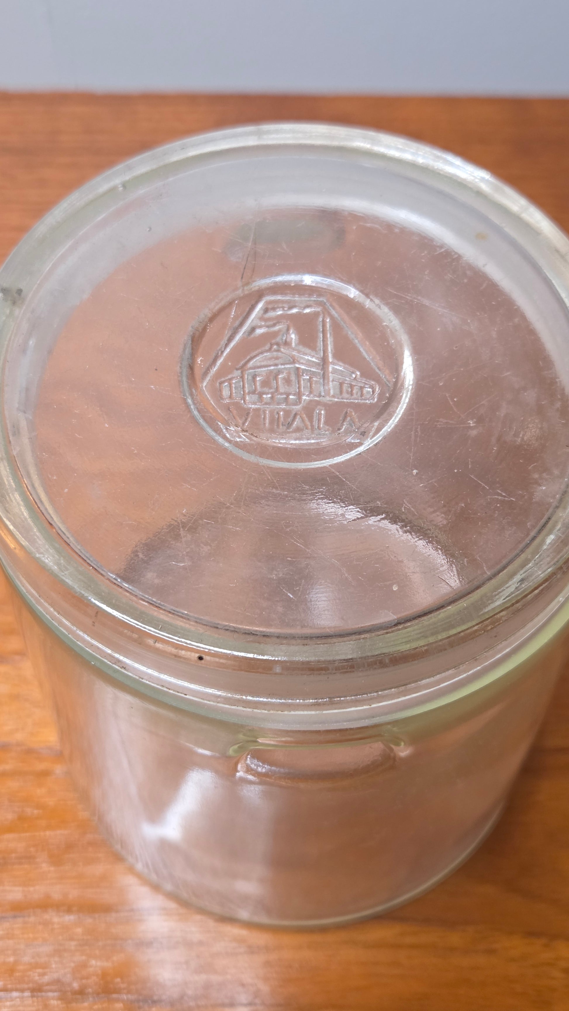 Viialan Lasin-purkki alkuperäisellä kannella. Purkissa näkyy iän tuomaa patinaa ja pientä käytönjälkeä, mutta on kokonaisuudessaan siistikuntoinen. Hyvä lisä kokoelmaan, somistukseen tai säilytykseen.