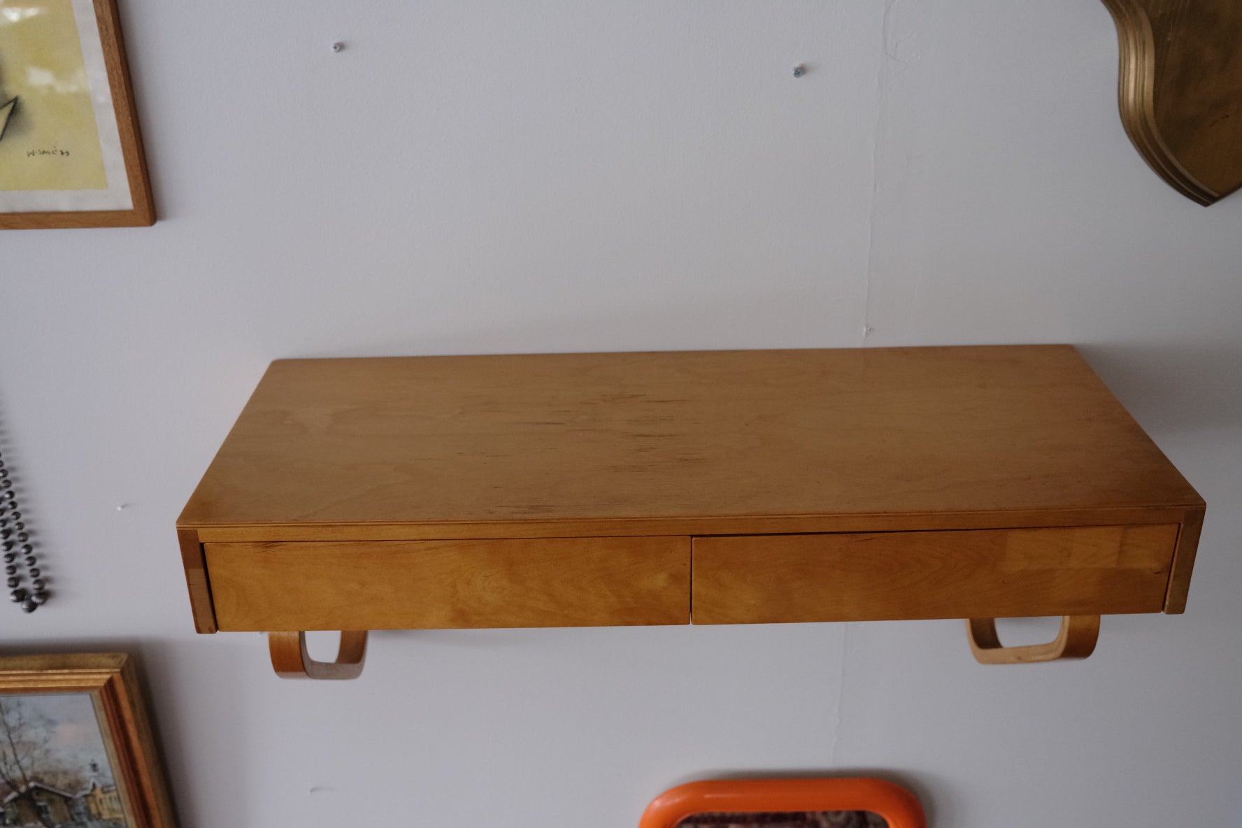 Alvar Aalto -seinäkonsoli kahdella laatikolla, malli 114A (kysy hintaa)