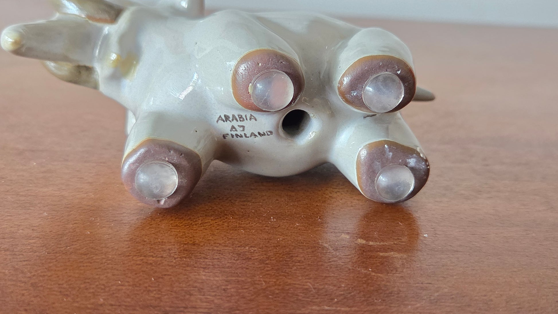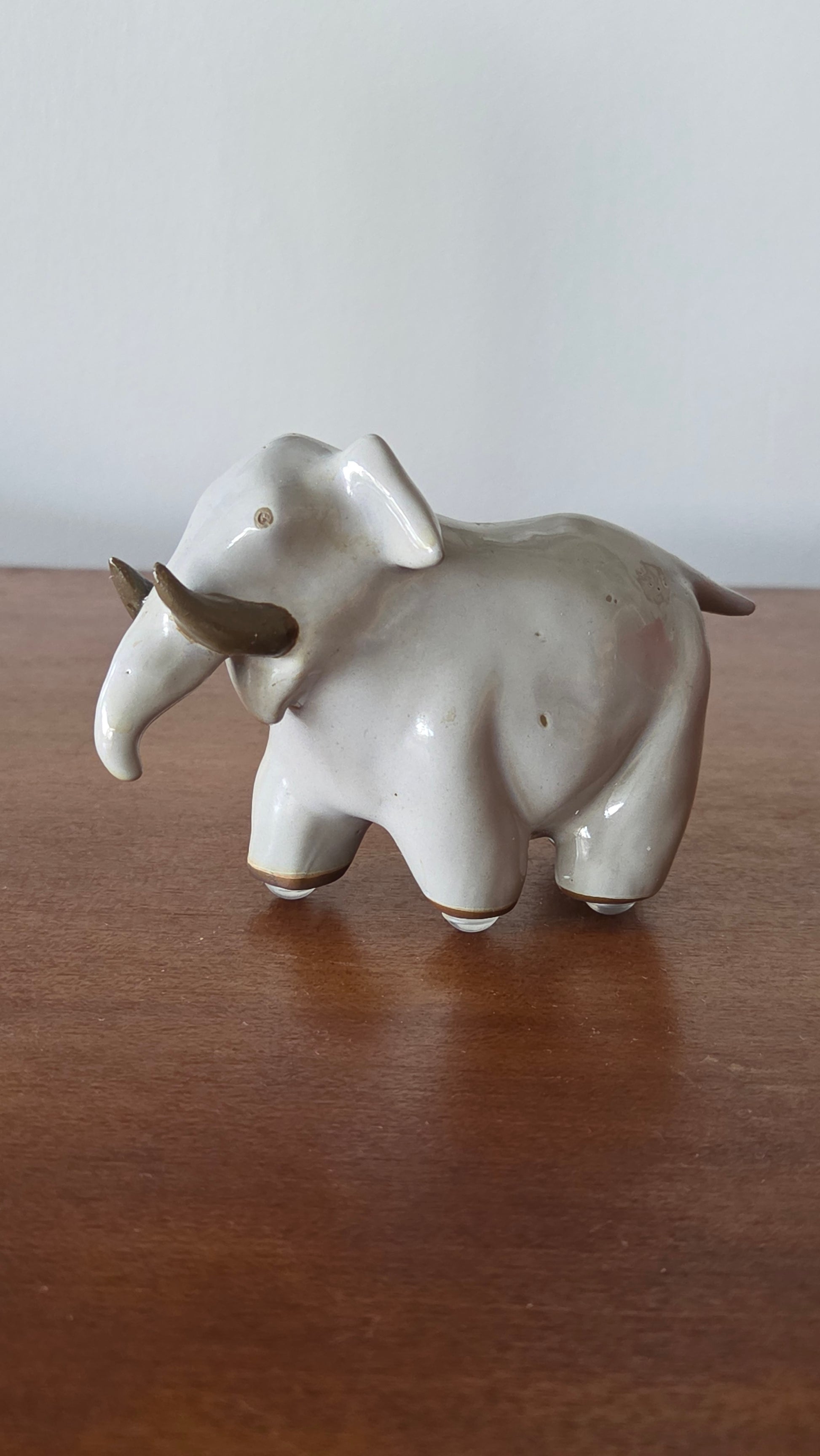 Kaunis ja harvinaisempi Arabian keramiikka-elefantti, suunnittelija Anja Juurikkala (1923–2015). Juurikkala tunnetaan erityisesti humoristisista Heluna-kannuista sekä meriaiheisesta Aquirius-astiastosta. Hän työskenteli Arabian palveluksessa 1950–60-luvuilla ja teki useita keräilijöiden arvostamia koriste-esineitä.