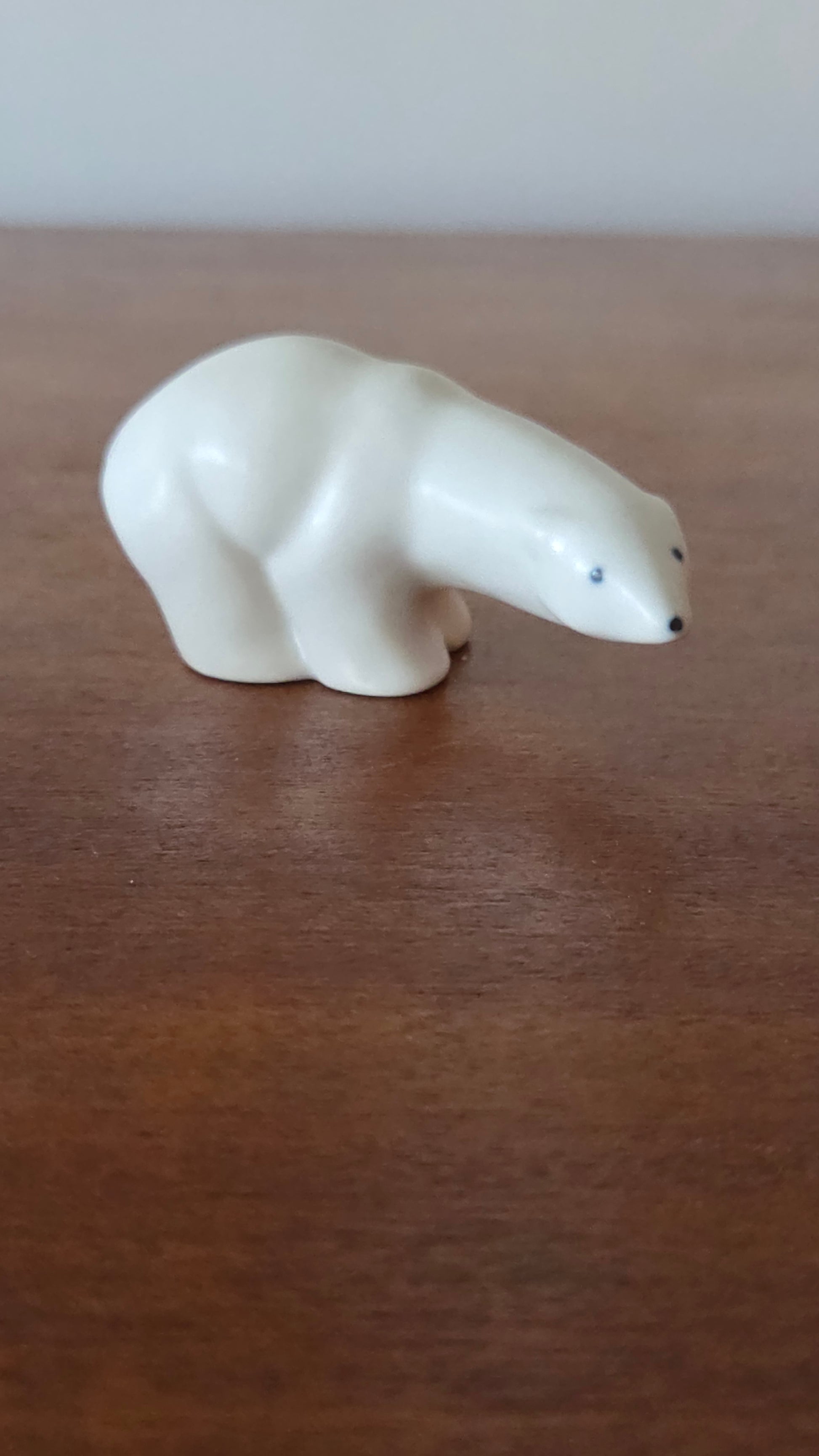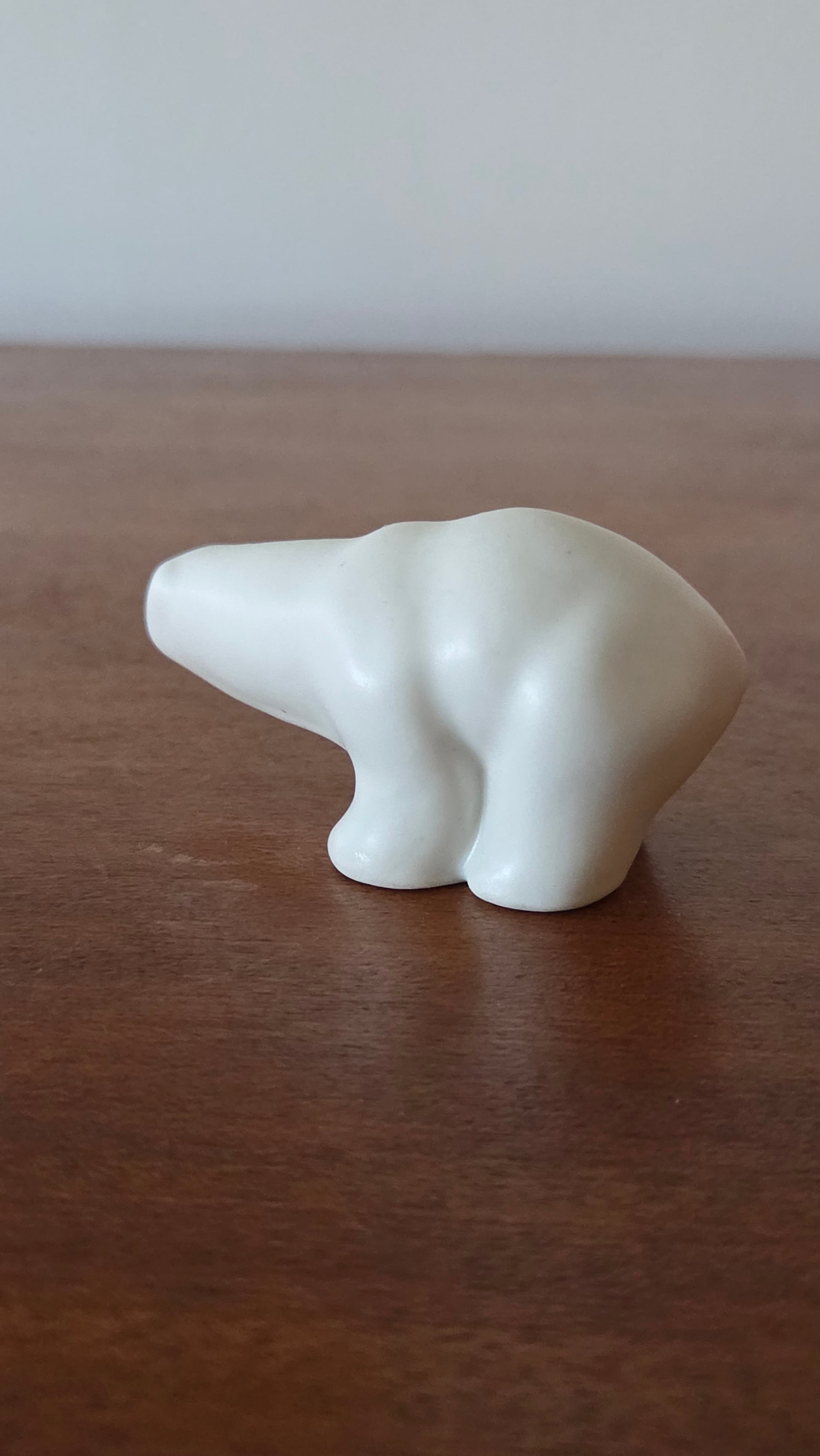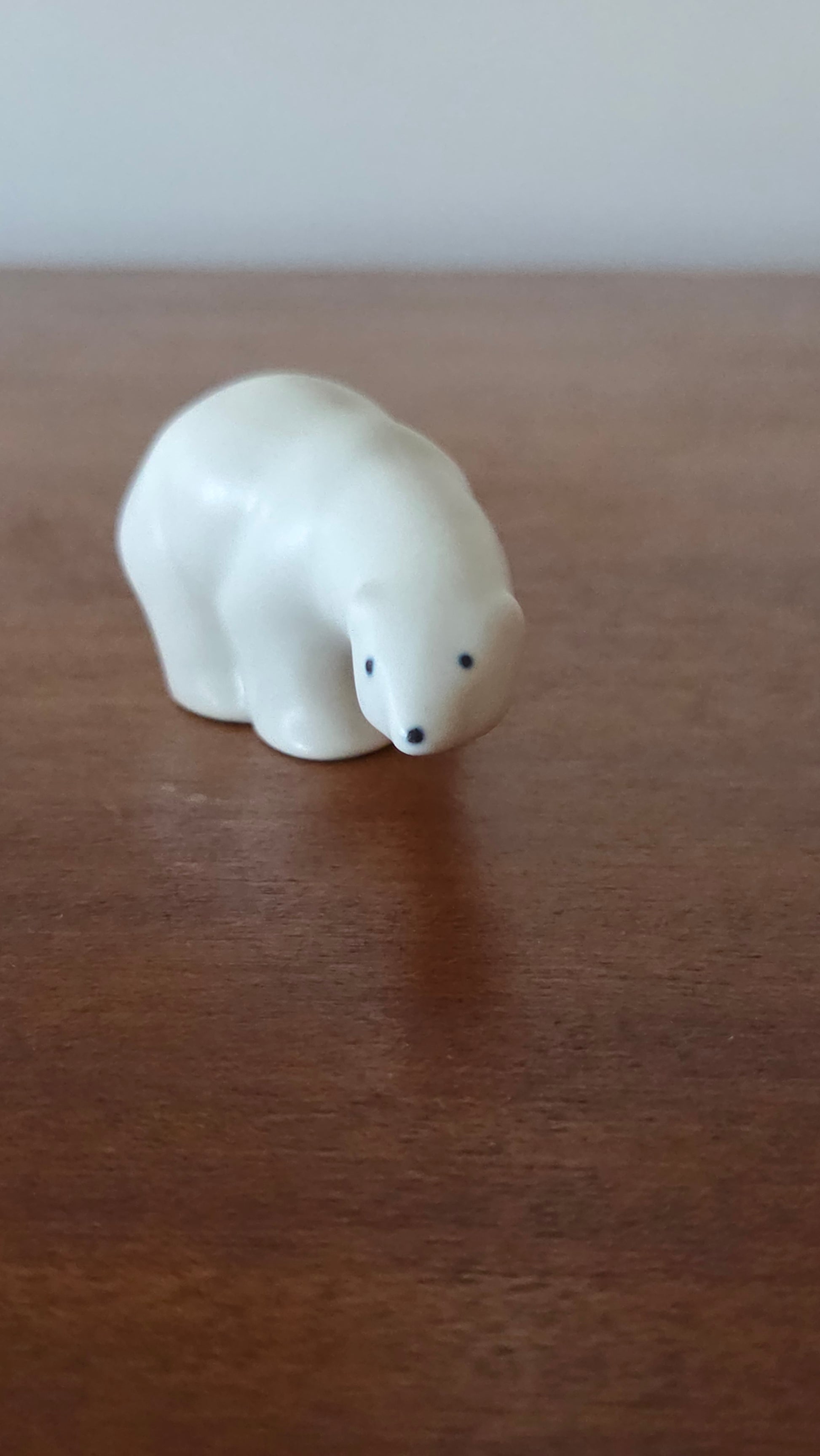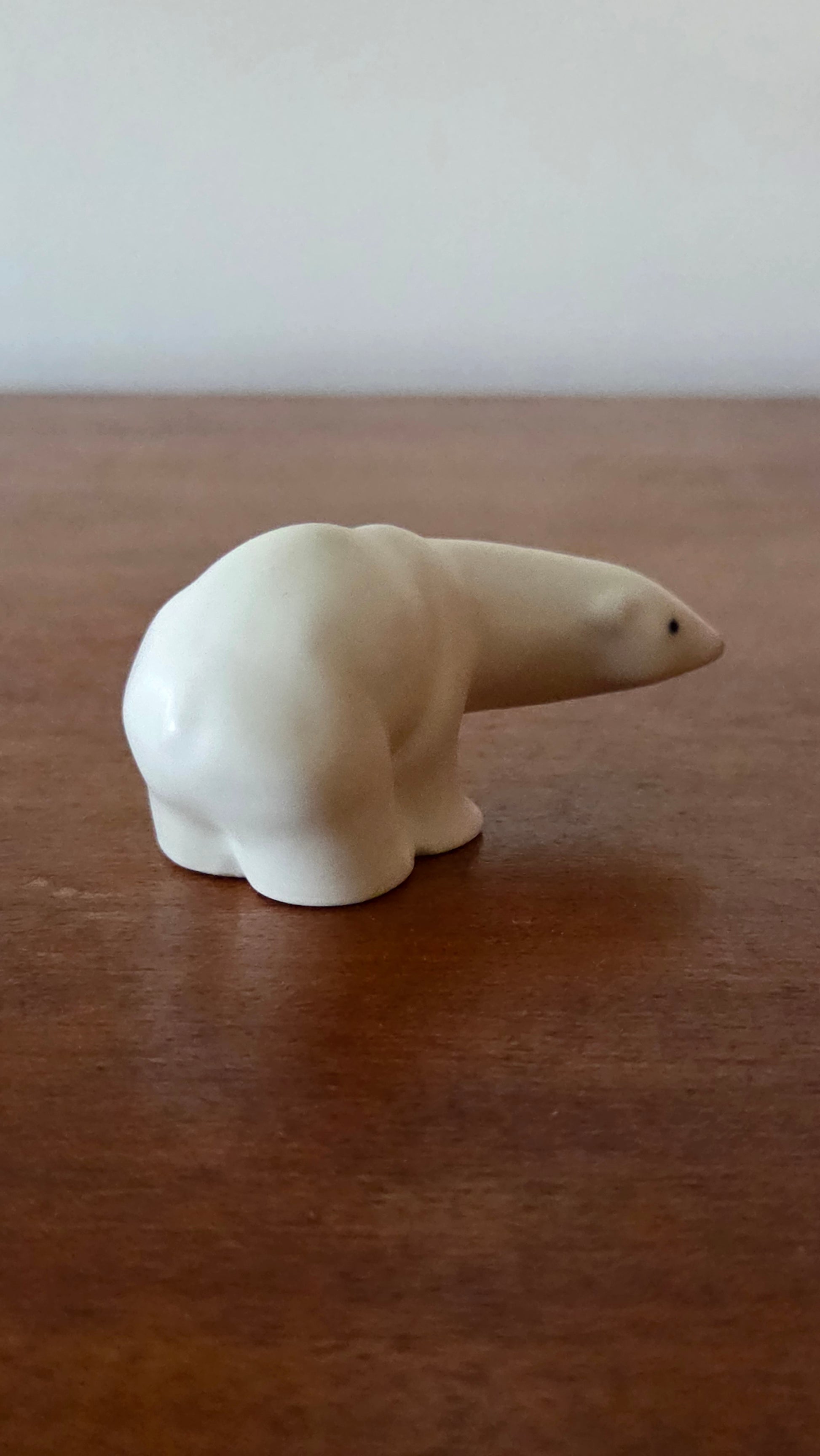 Suloinen ja harvinaisempi Arabian fajanssinen jääkarhu, suunnittelija Raili Eerola. Tämä käsinmaalattu pikkukokoelmafiguuri on valmistettu 1960-luvulla.