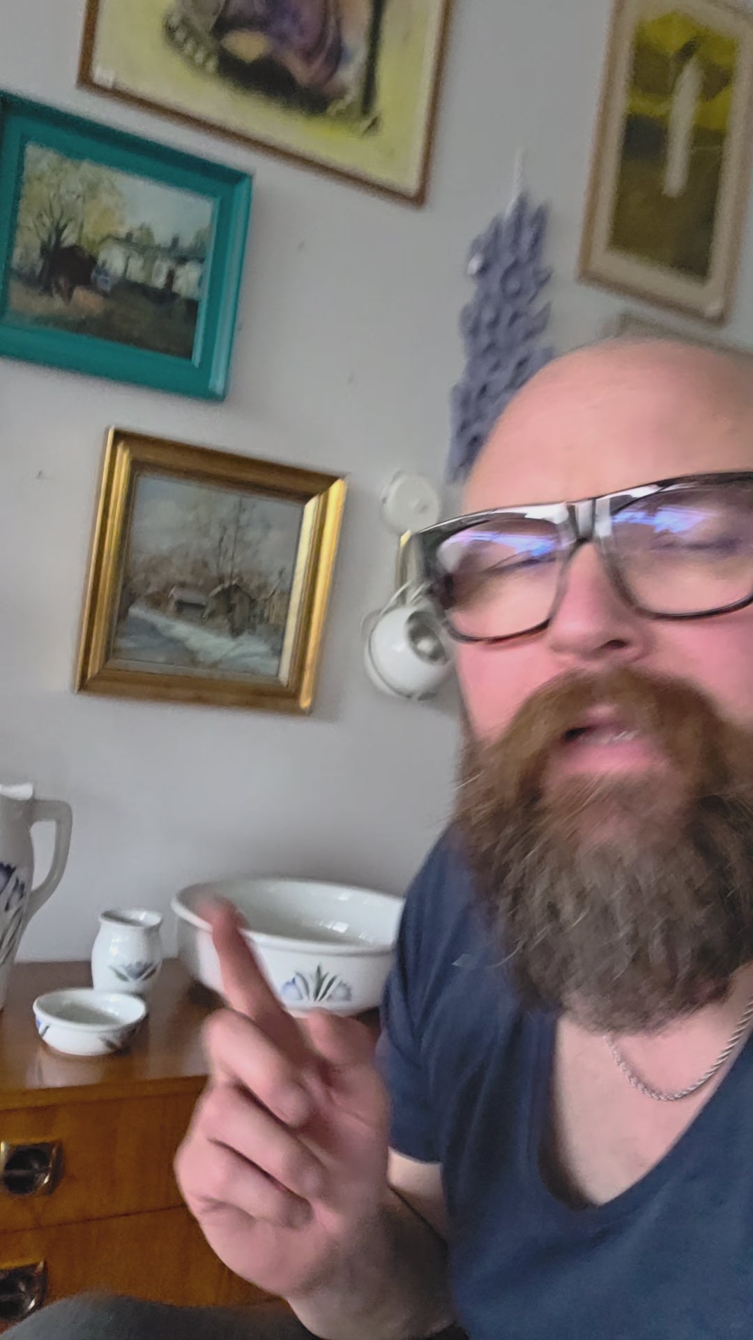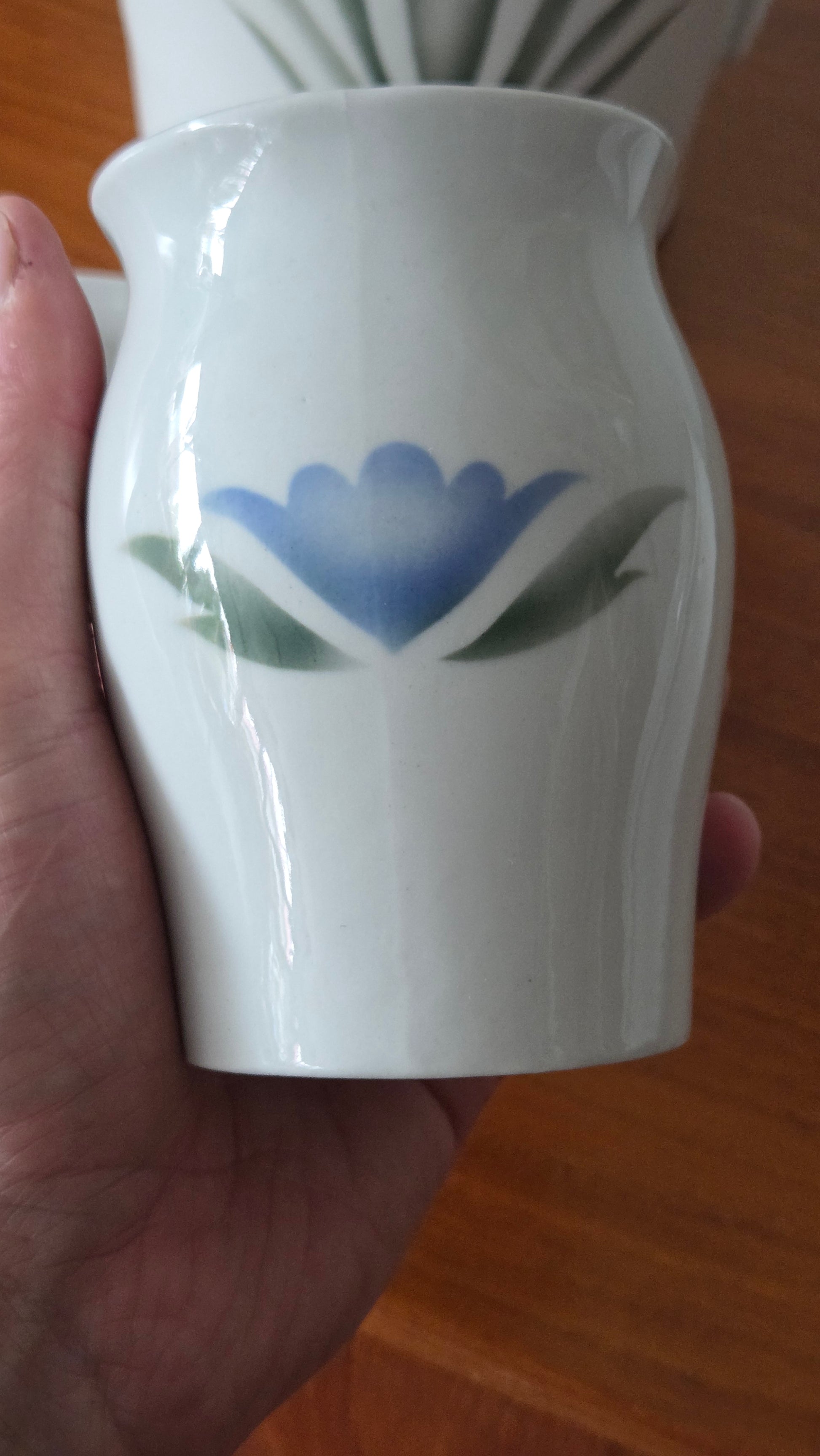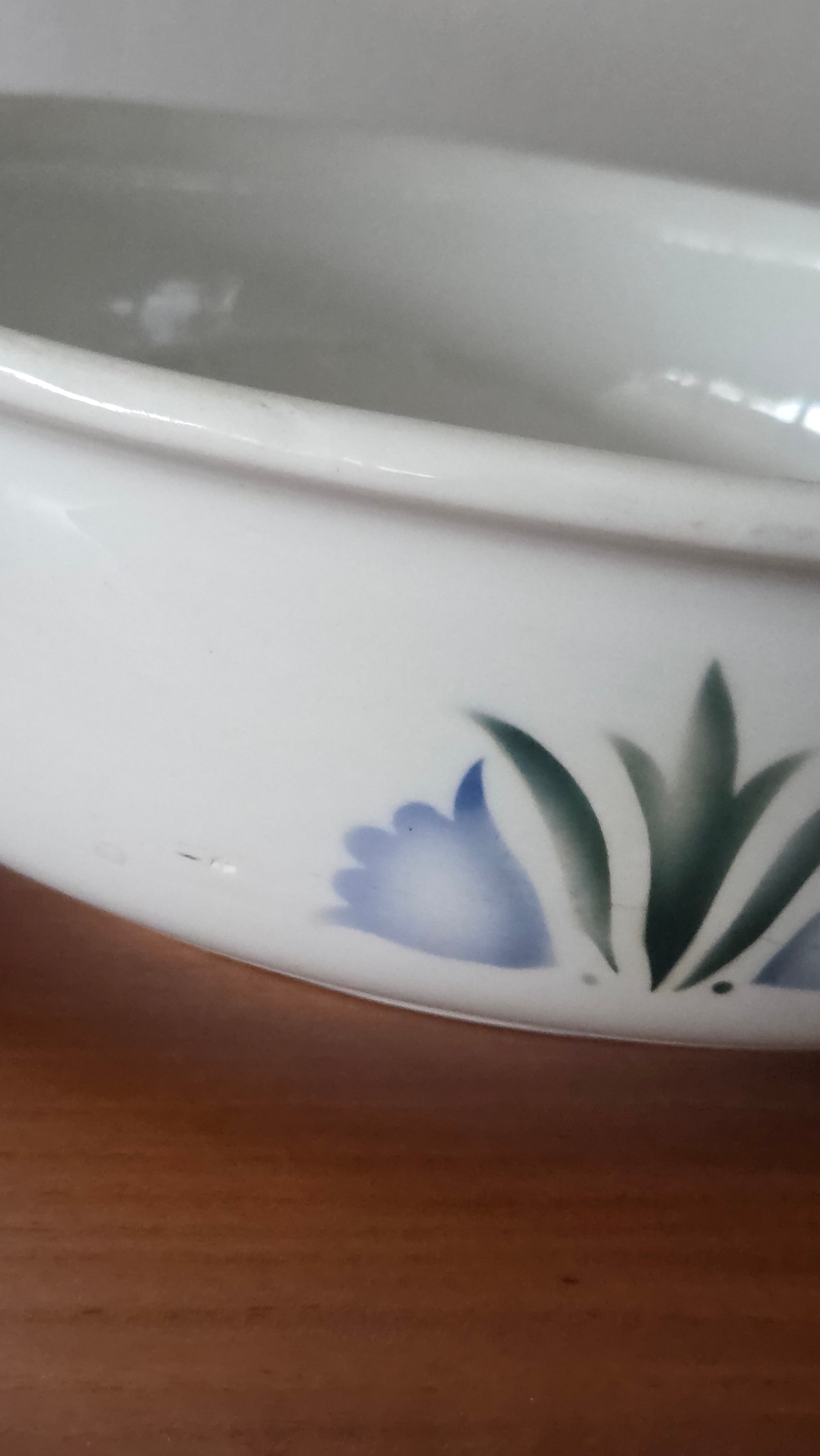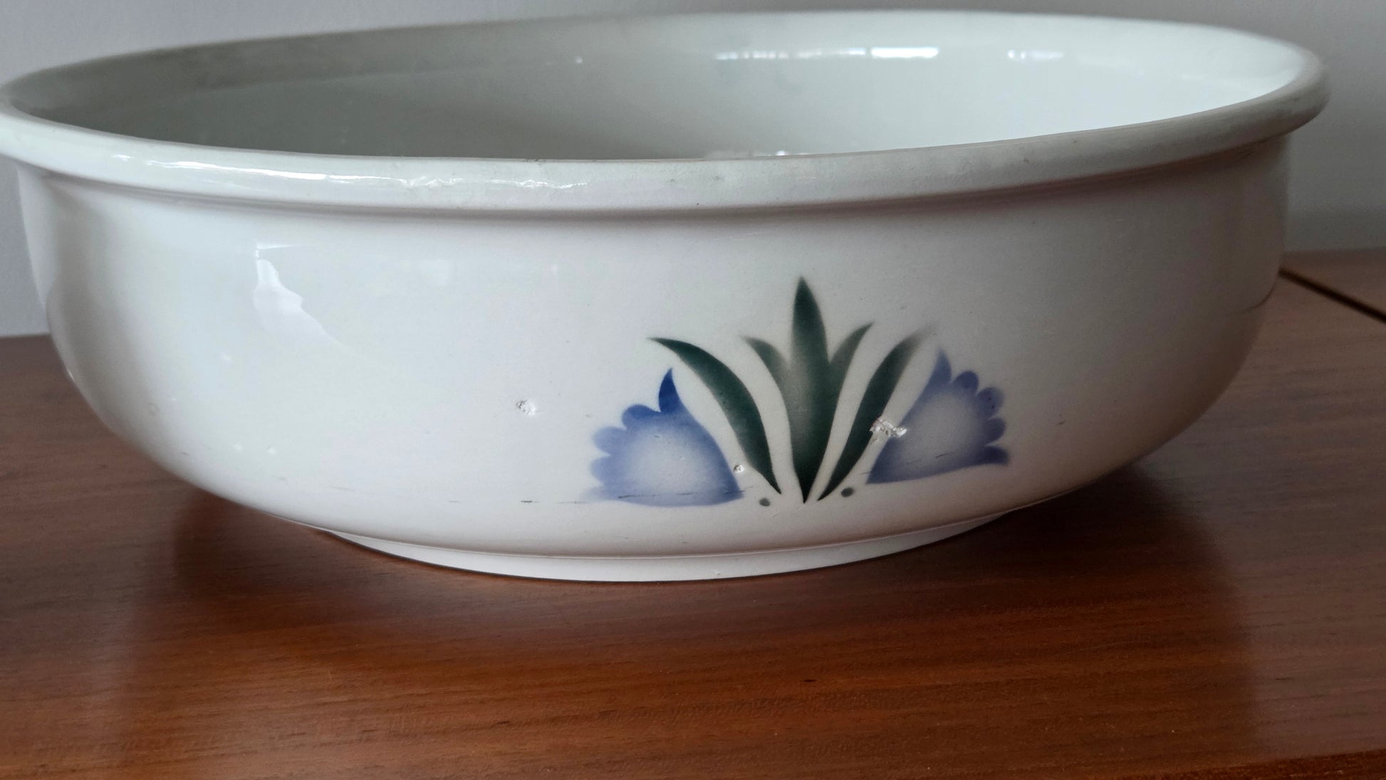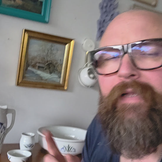 Kokonaisuus on ehjä ja siistikuntoinen, vain pientä käytön ja iän mukaista jälkeä. Kaunis käsinmaalattu Sinikello-kuviointi tekee tästä setistä arvostetun keräily- ja sisustusesineen. Sopii mainiosti niin käyttöön kuin koristeeksi.