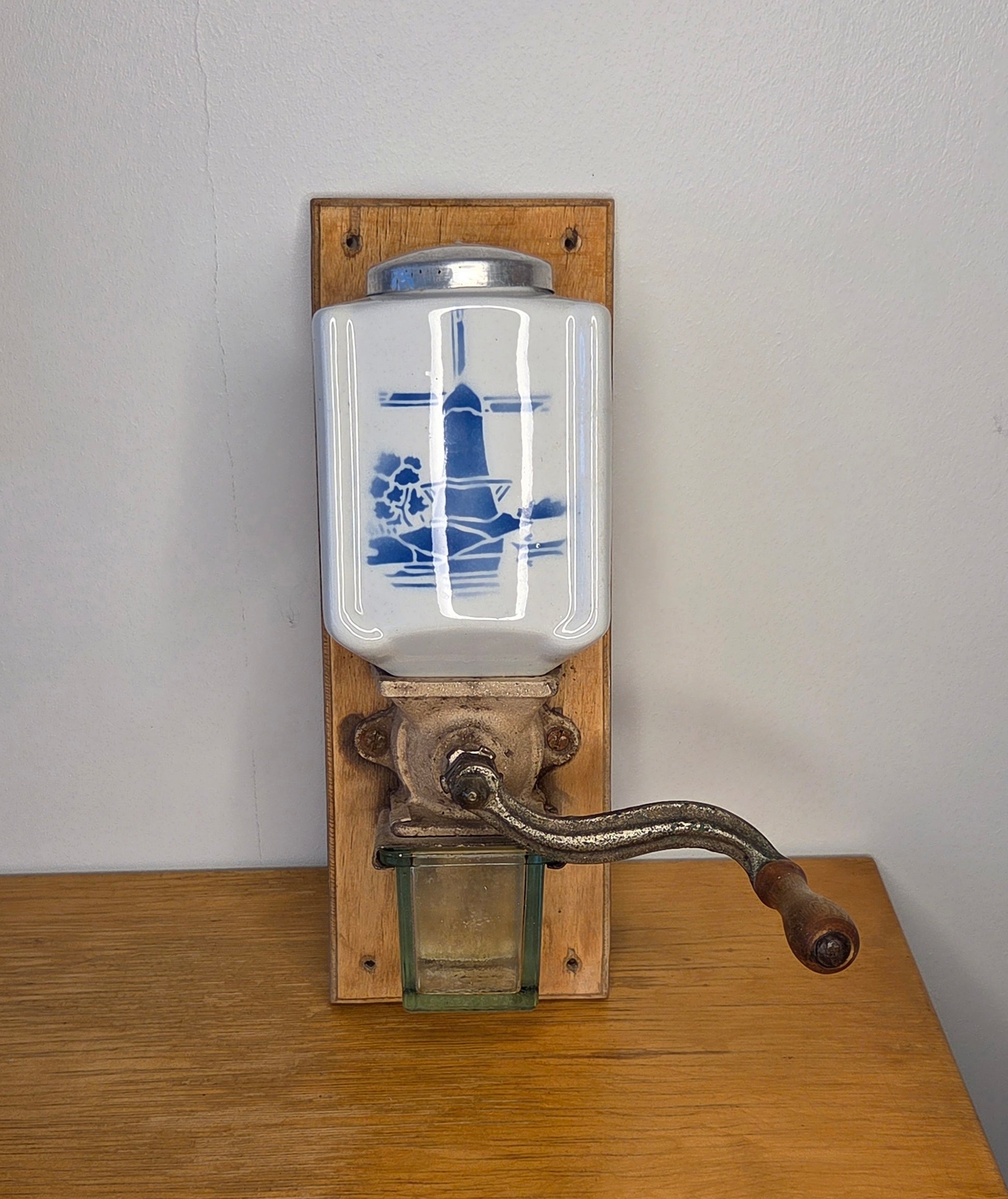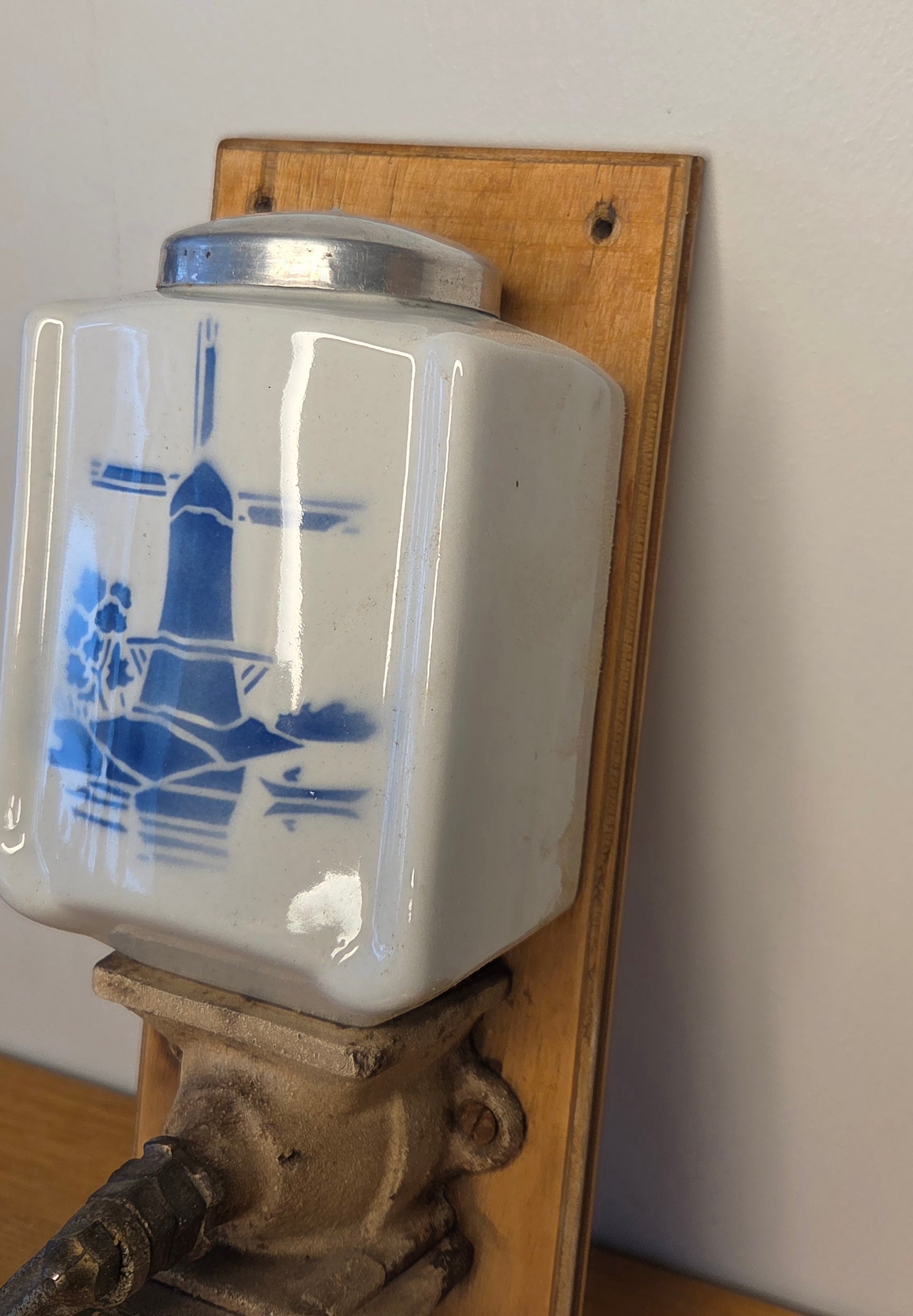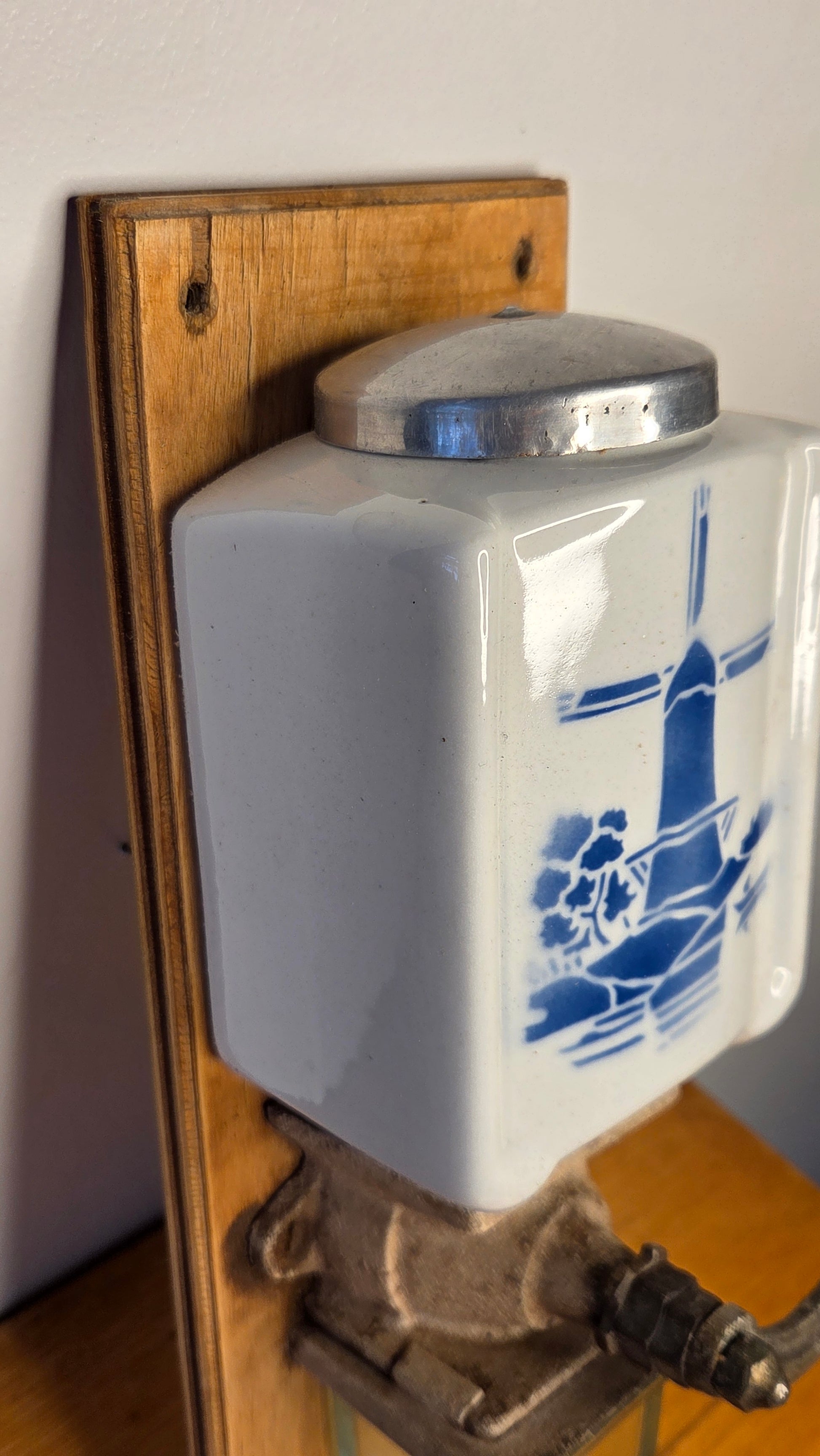 Hyväkuntoinen ja täysin ehjä Arabian Tuulimylly kahvimylly.