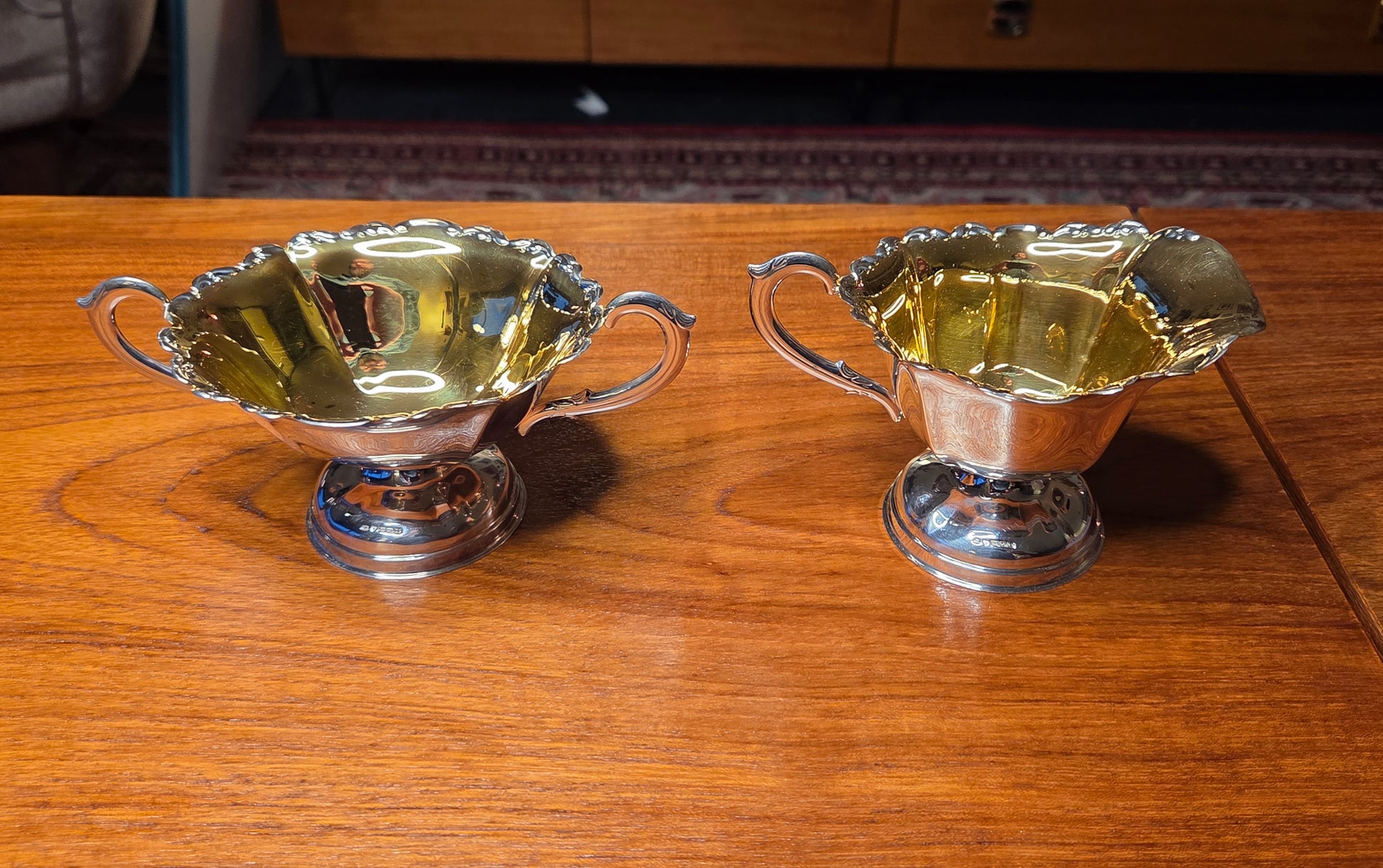 Kaunis ja elegantti vanhanmallinen sokerikko–kermakko-setti, valmistettu 830-hopeasta.