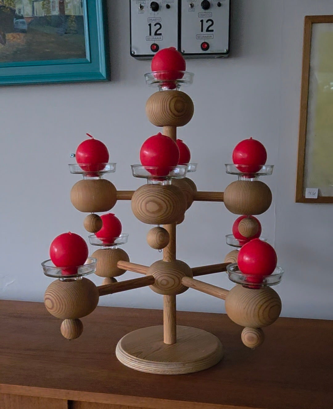 Harvinainen ja näyttävä Elämänpuu-kynttelikkö, suunnittelija Kaija Aarikka Aarikka Finlandille 1960-luvulla.