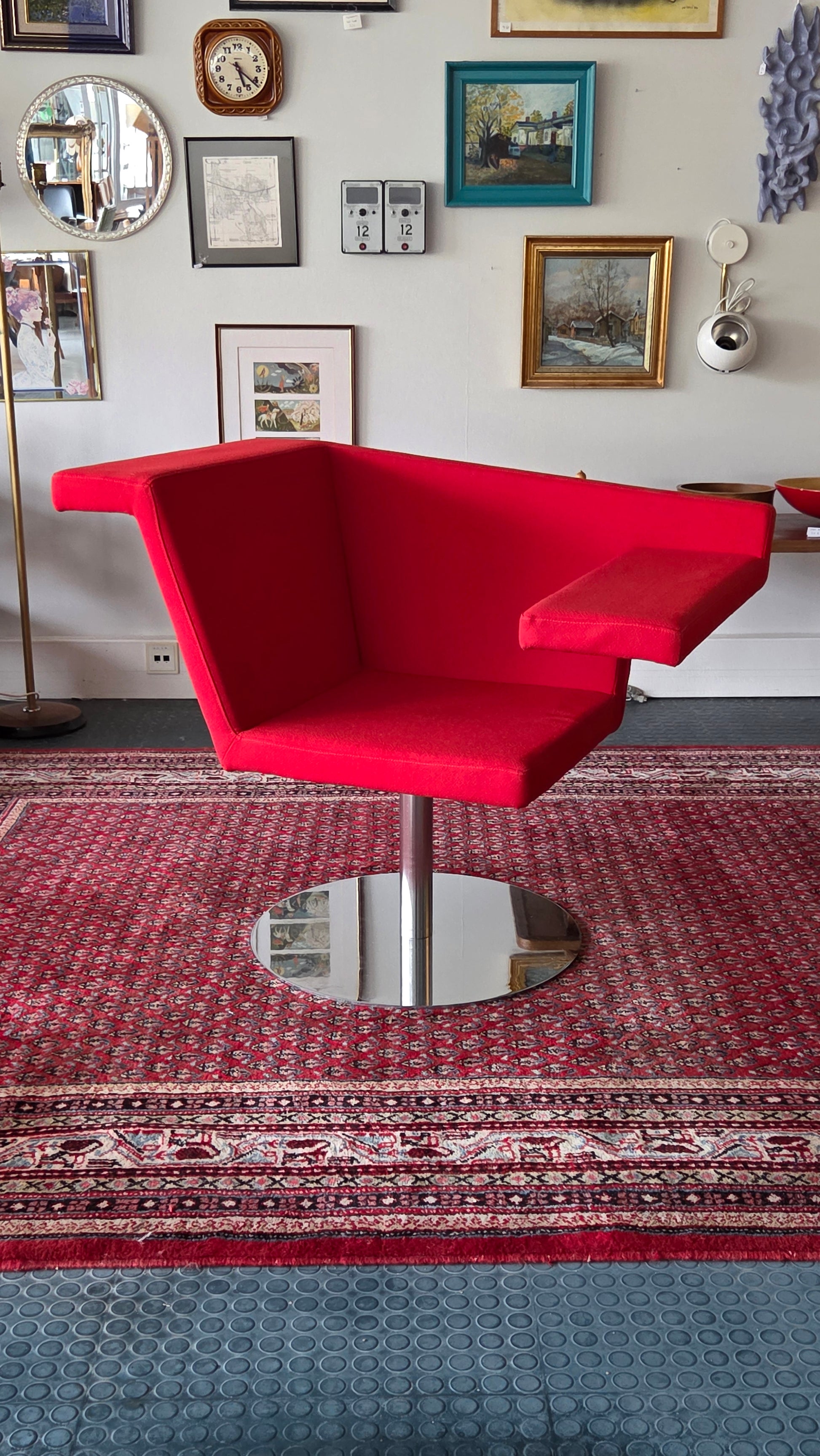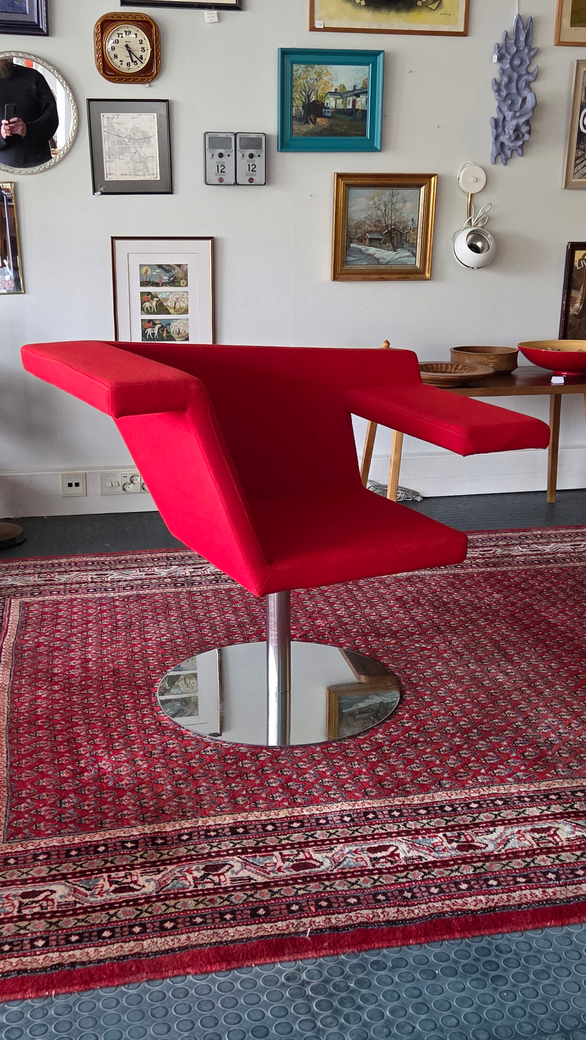 Kaite-valmistajan Laptop-tuoli, suunnittelija Marika Häkkinen. Tämä rohkean moderni ja veistoksellinen istuin erottuu persoonallisella muotoilullaan, jossa yhdistyvät näyttävyys ja käytännöllisyys.