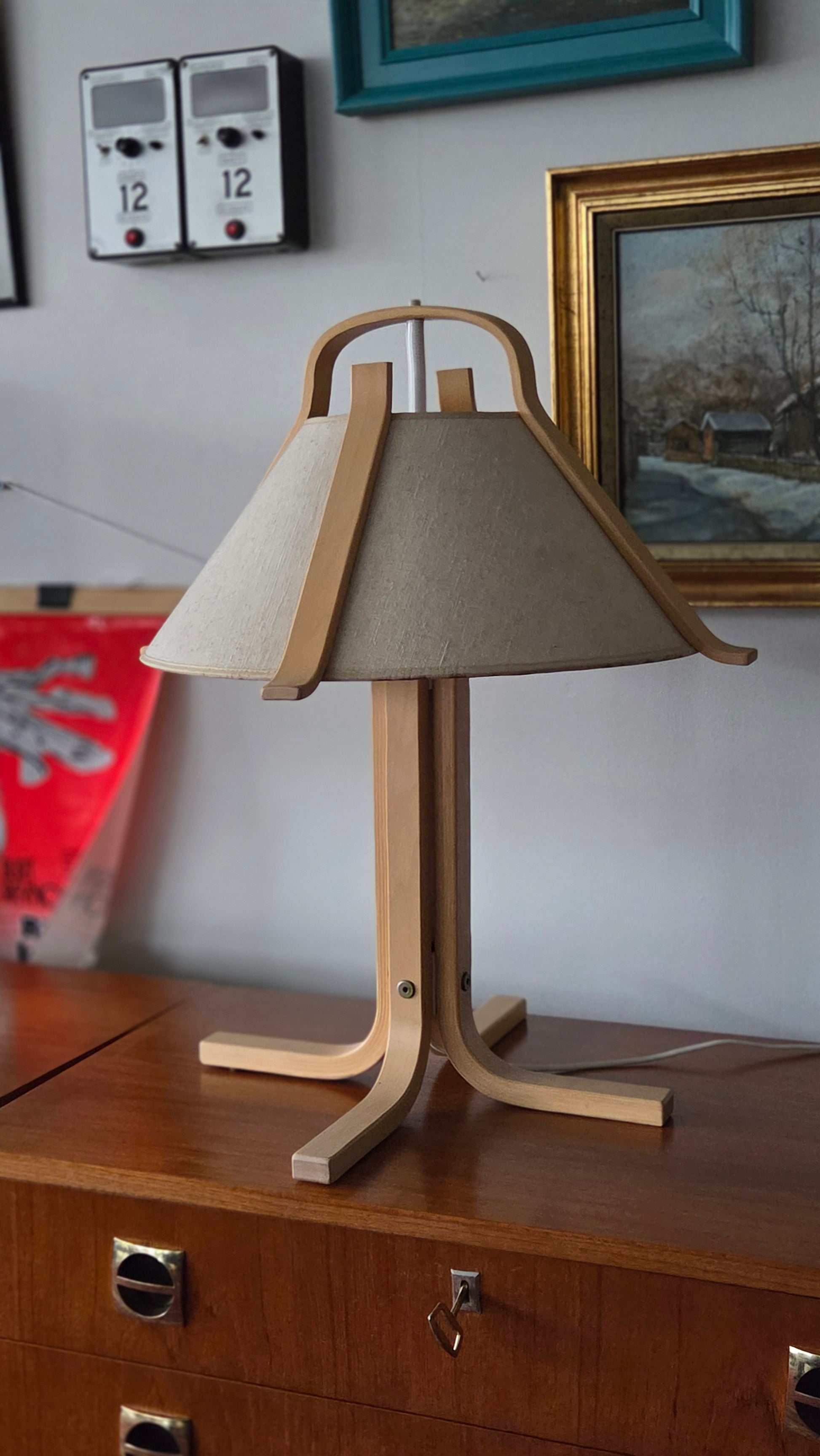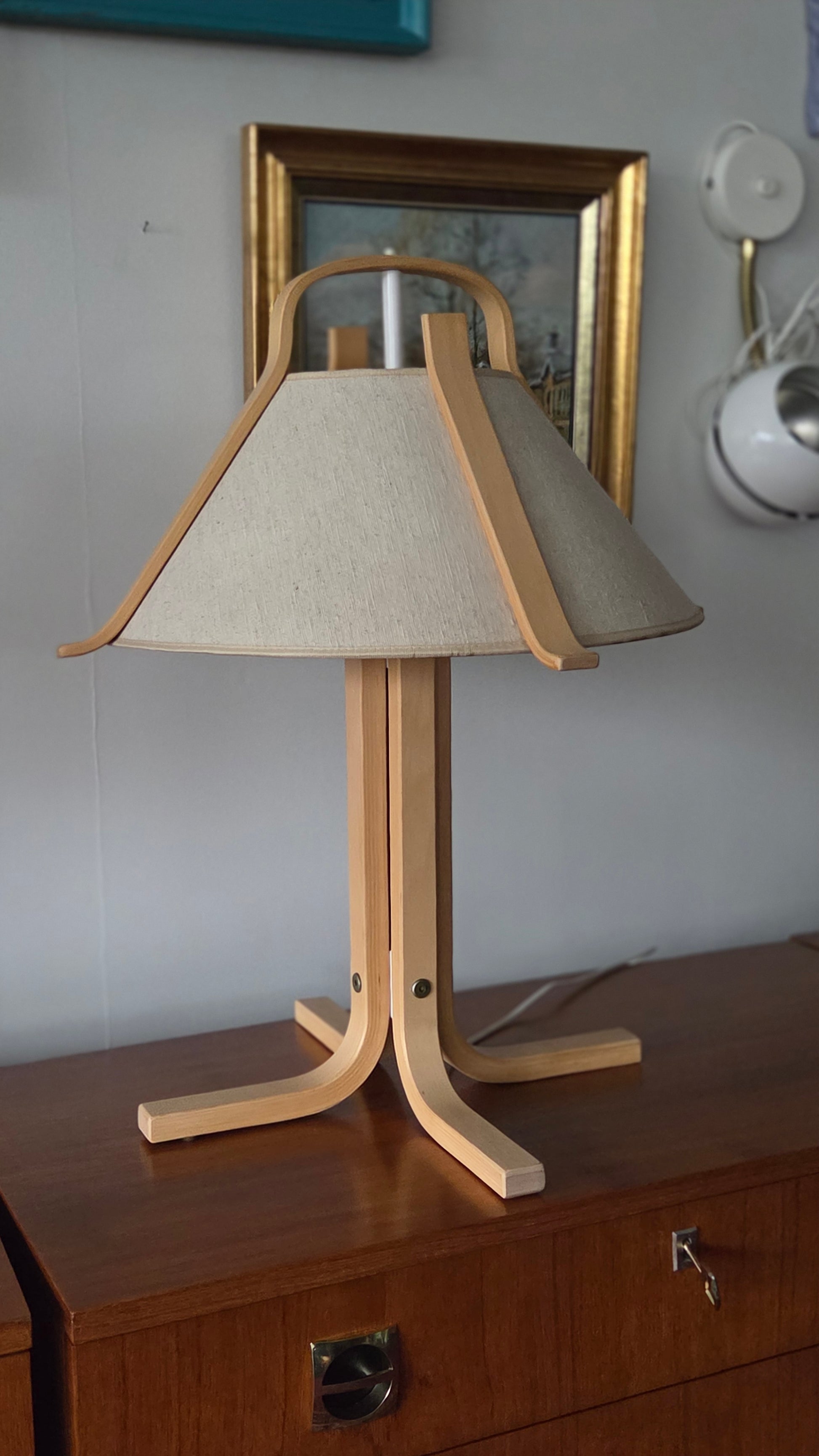 Materiaali: vaalea puurunko ja kangasvarjostin