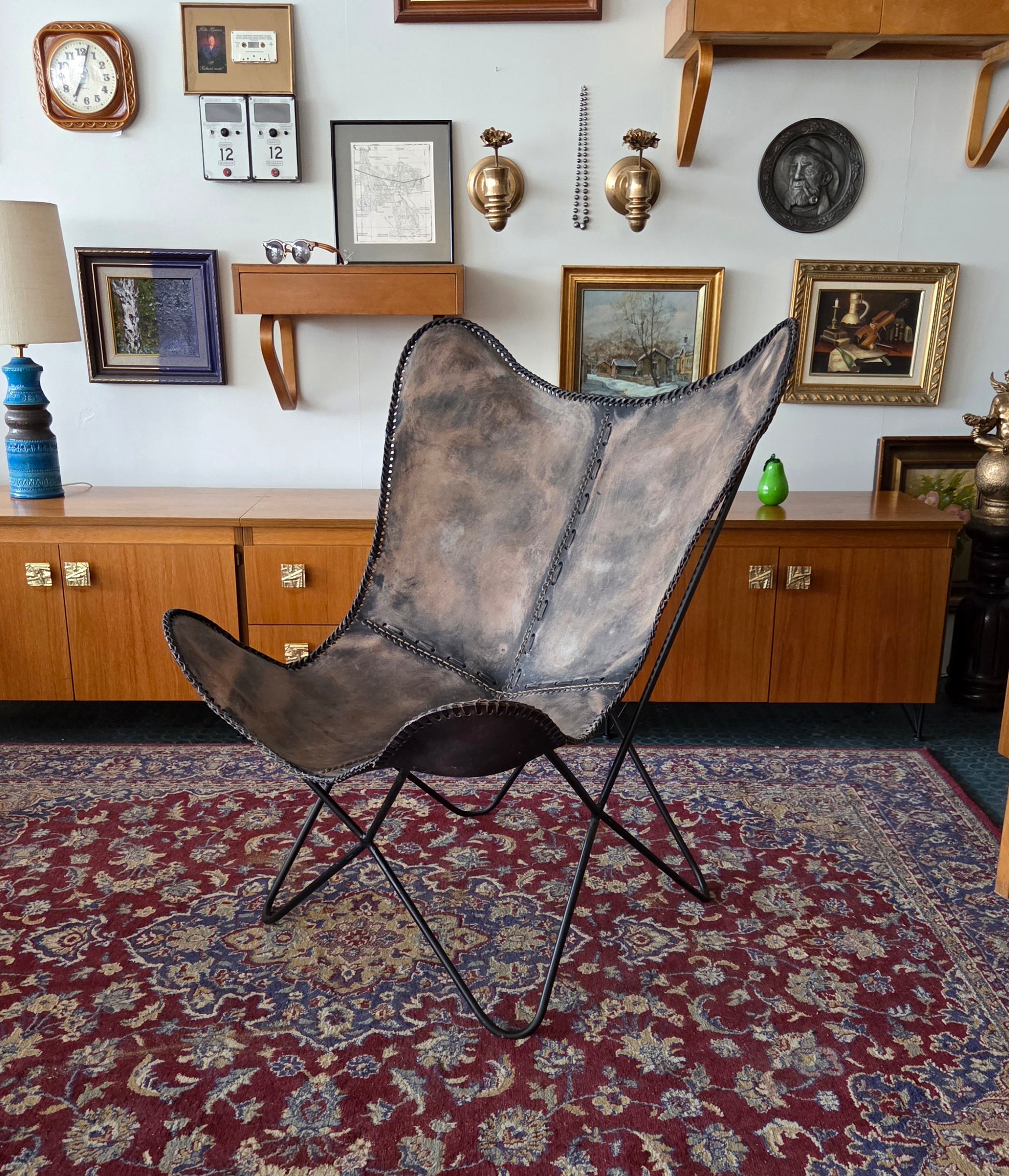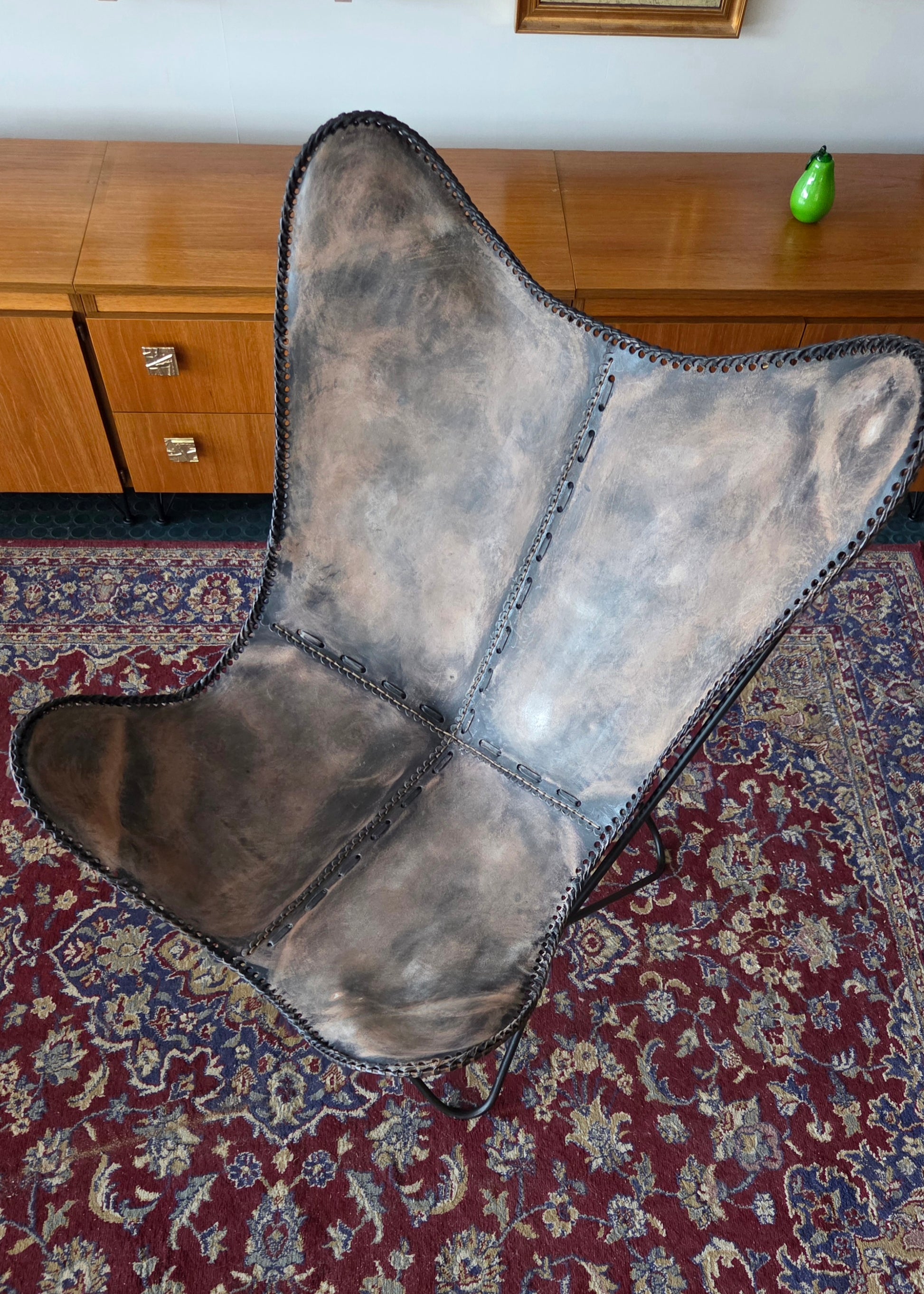 Kulutettu lepakkotuoli, kaikki ompeleet uusittu.