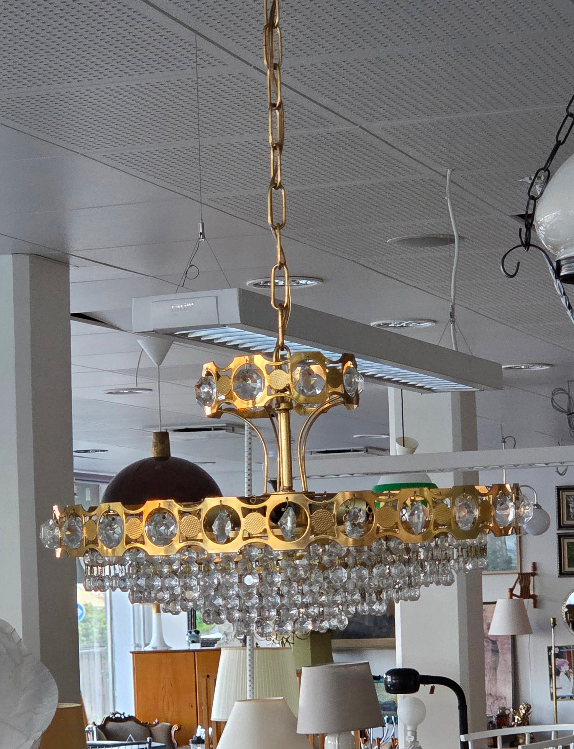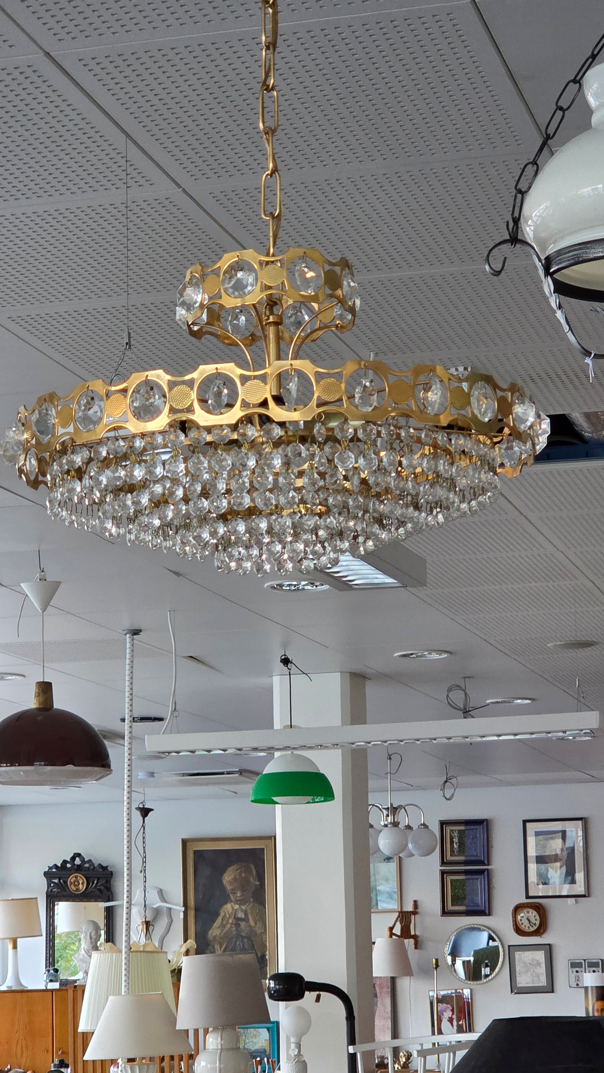 Myydään upea Lival-merkkinen kristallikruunu, jossa on messinkisävyinen runko ja runsaasti kimaltelevia kristalliprismoja. Yläosaa kiertävät suuret, hiotut lasikivet, jotka heijastavat valoa kauniisti. Laadukas suomalainen design-valaisin, joka sopii niin kotiin kuin juhlatilaankin tuomaan näyttävyyttä ja arvokkuutta.