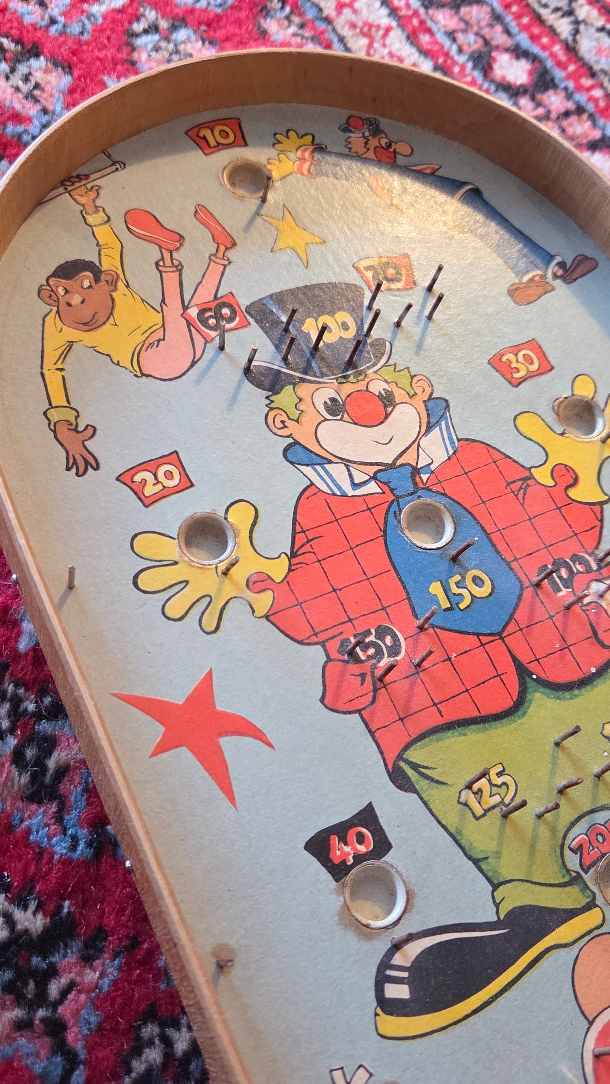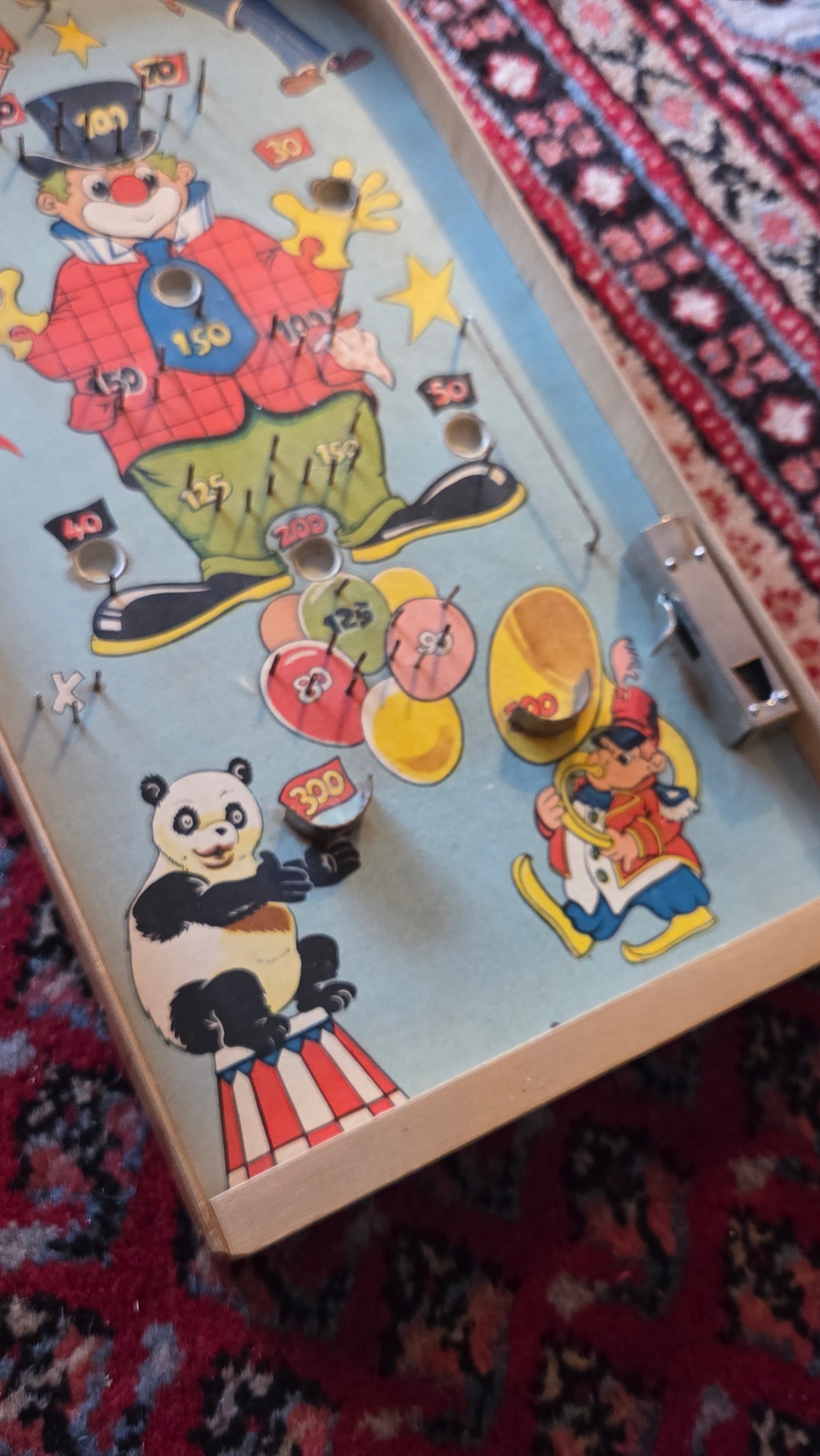 Mekaaninen flipperipeli / nupottelupeli – sirkusaiheinen, 41 x 20 cm