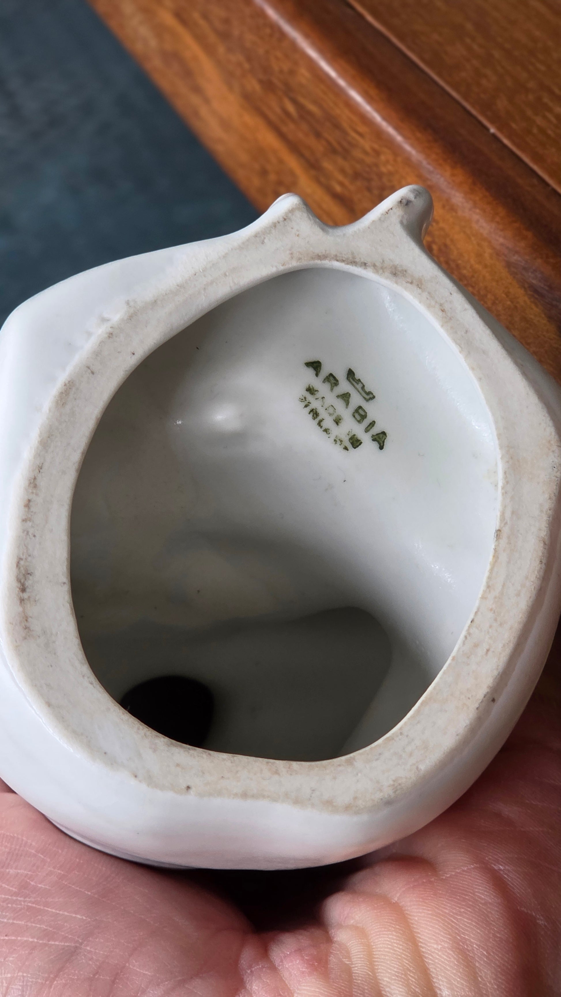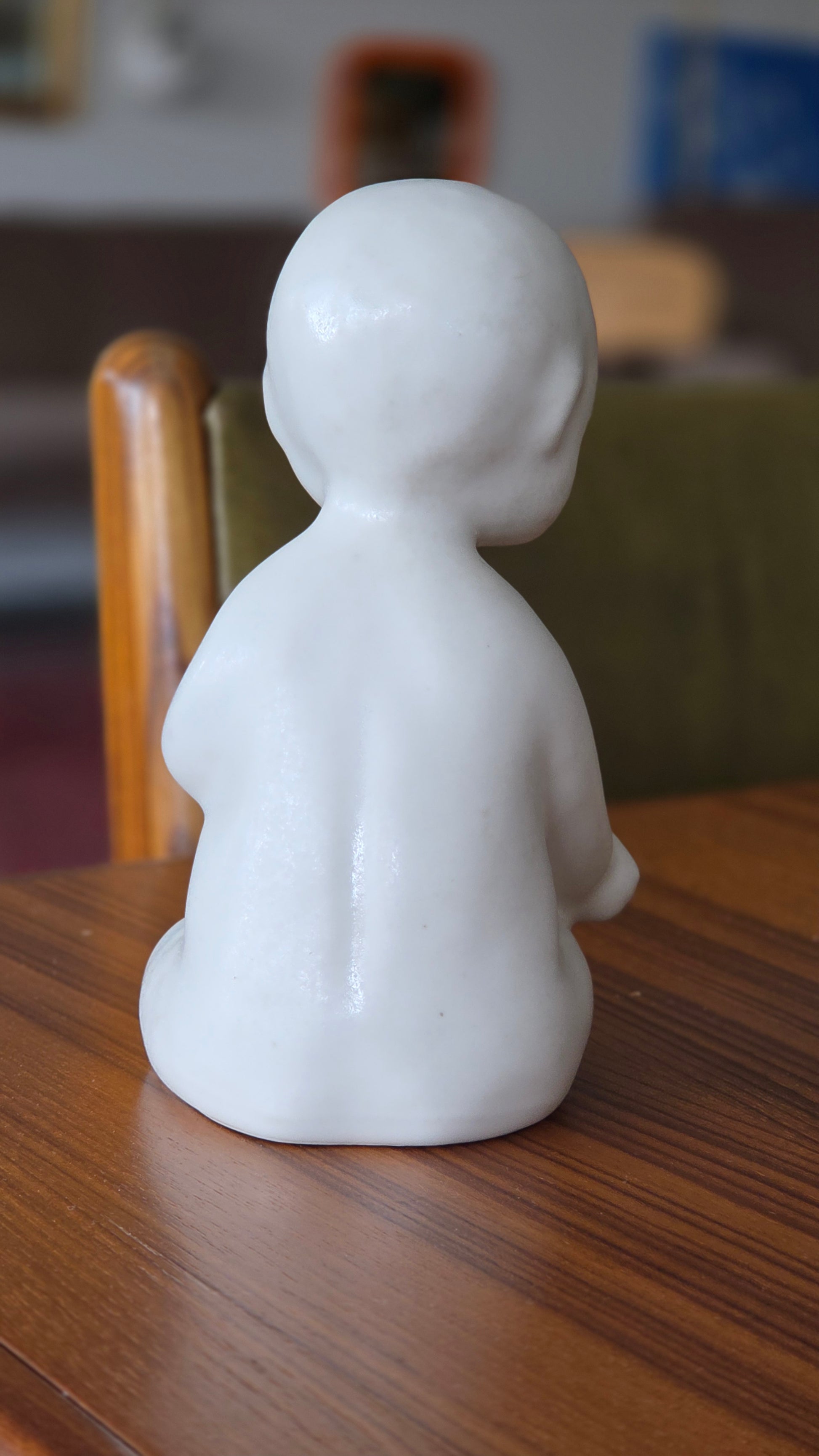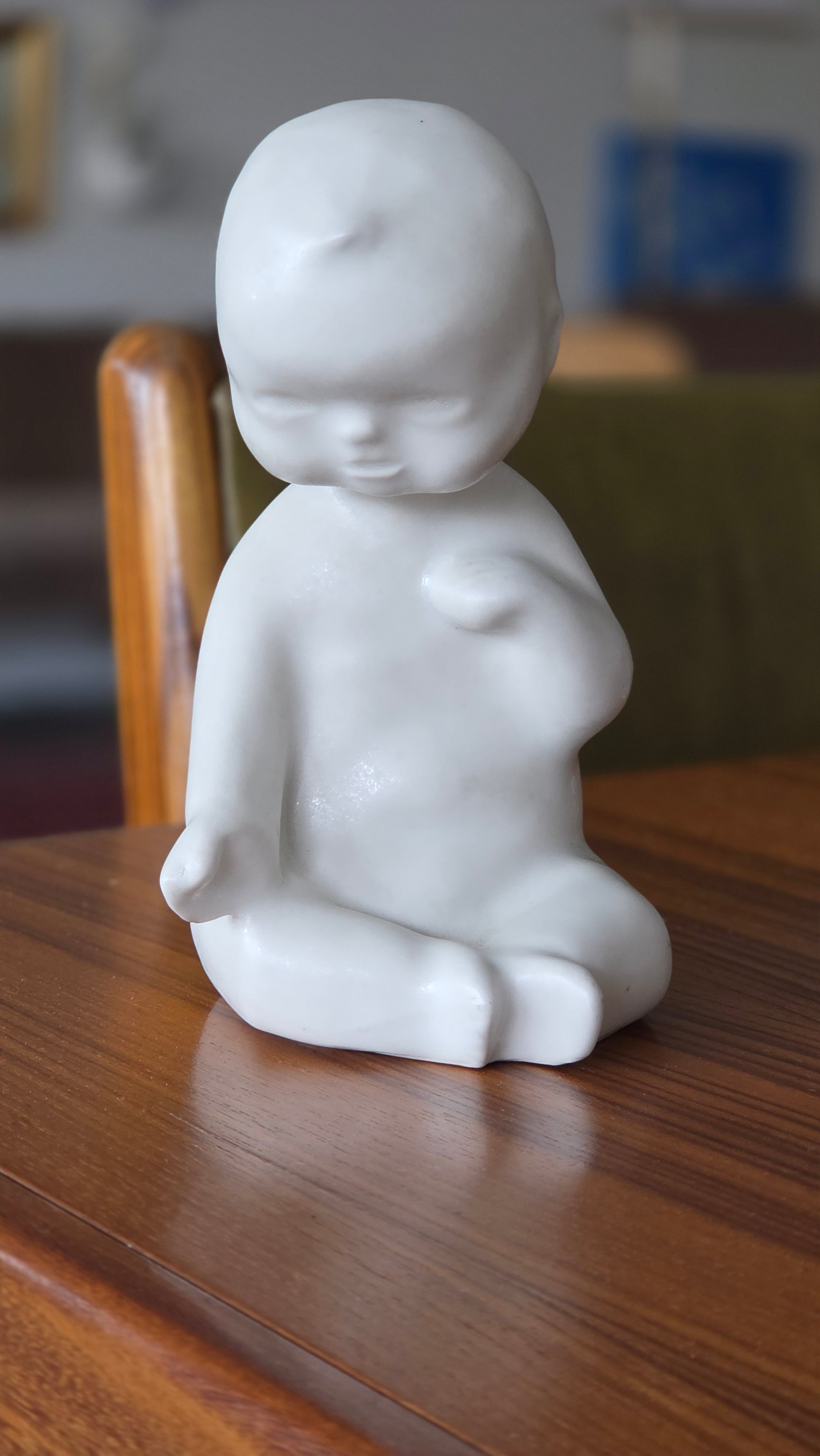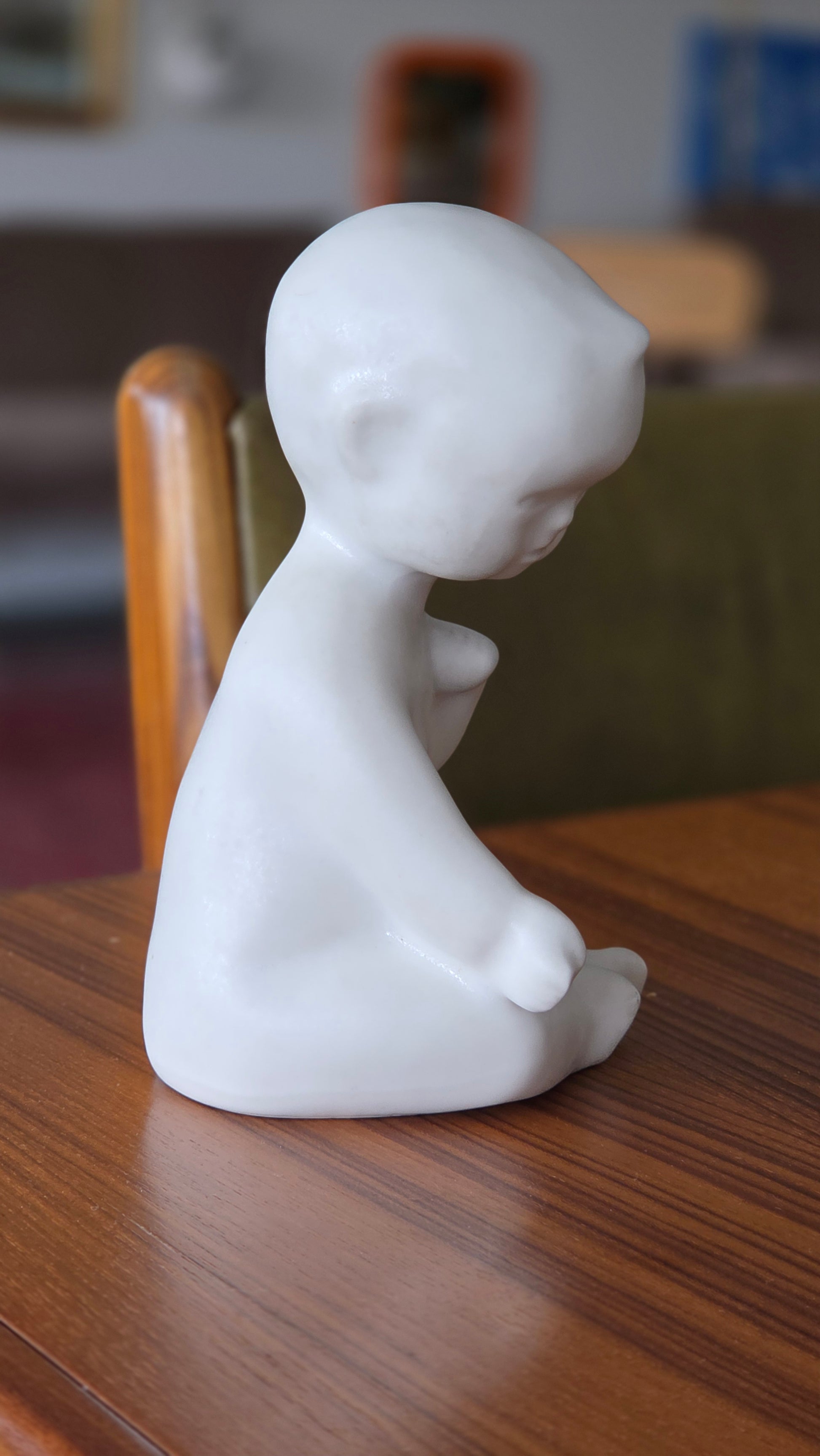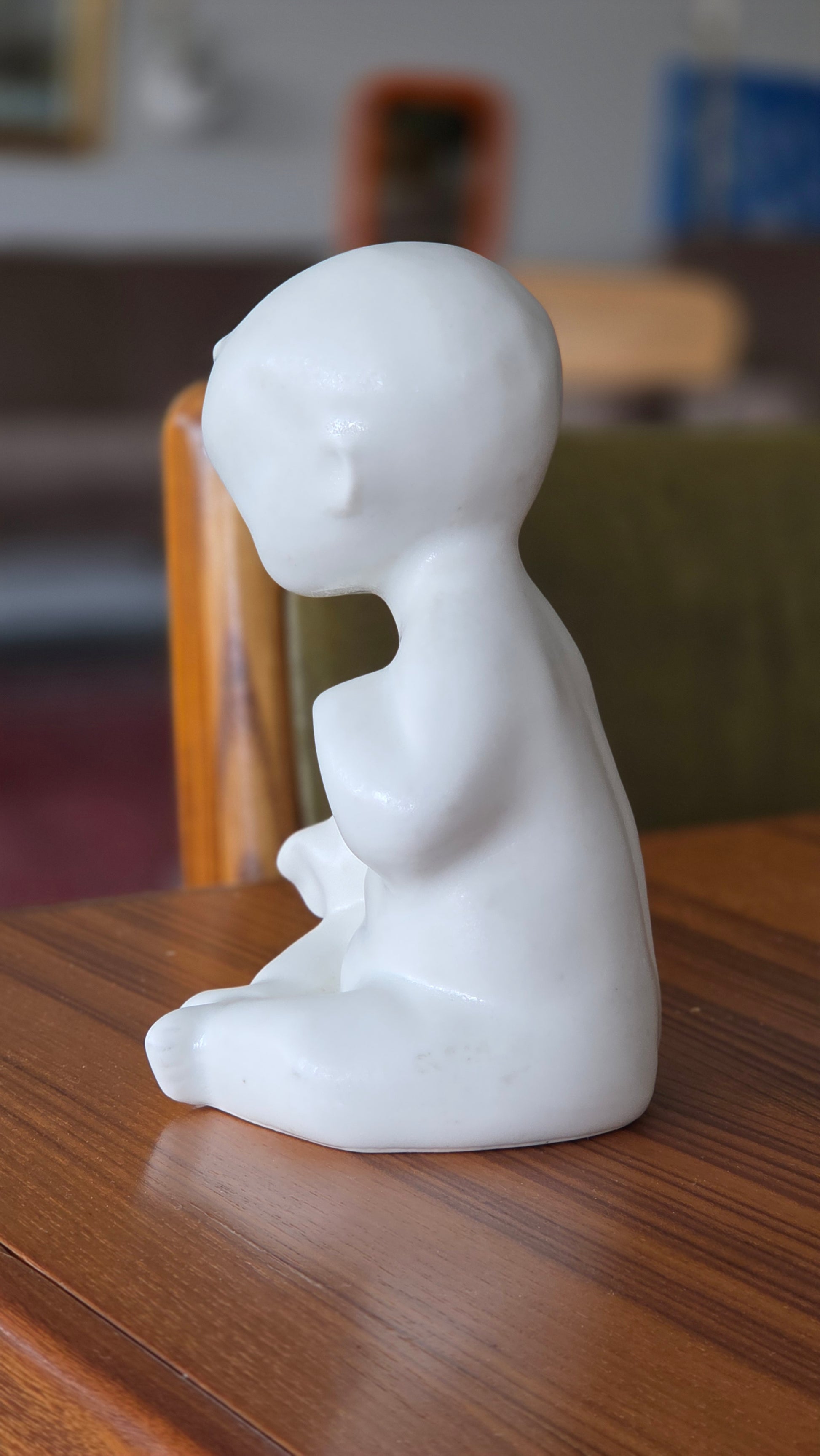 Arabian valmistama kaunis valkoinen istuva lapsi -figuuri. Suunnittelija Ulf Tikkanen