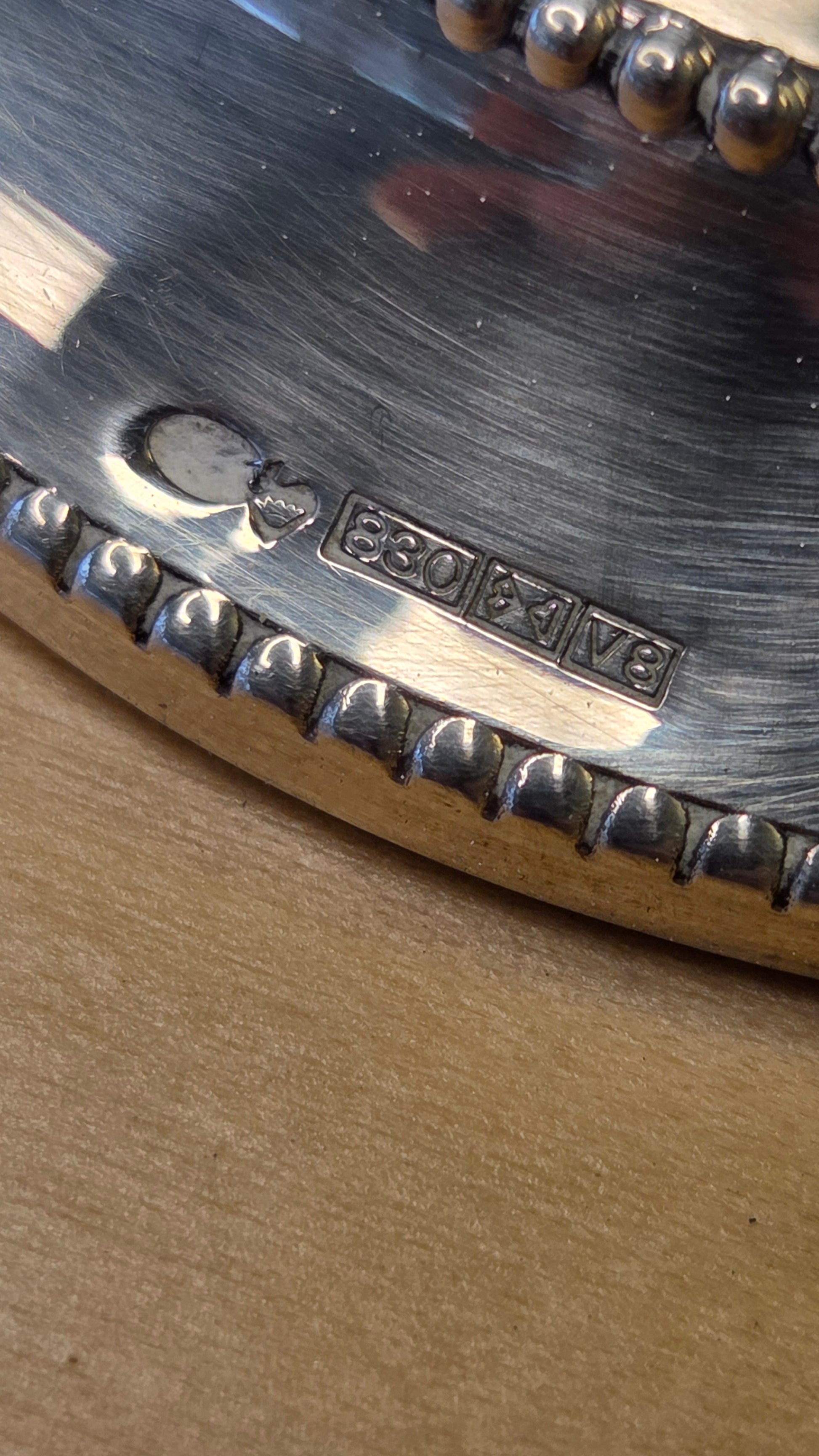 Kaunis pari 830-hopeisia kynttilänjalkoja. Korkeus 8,7cm.