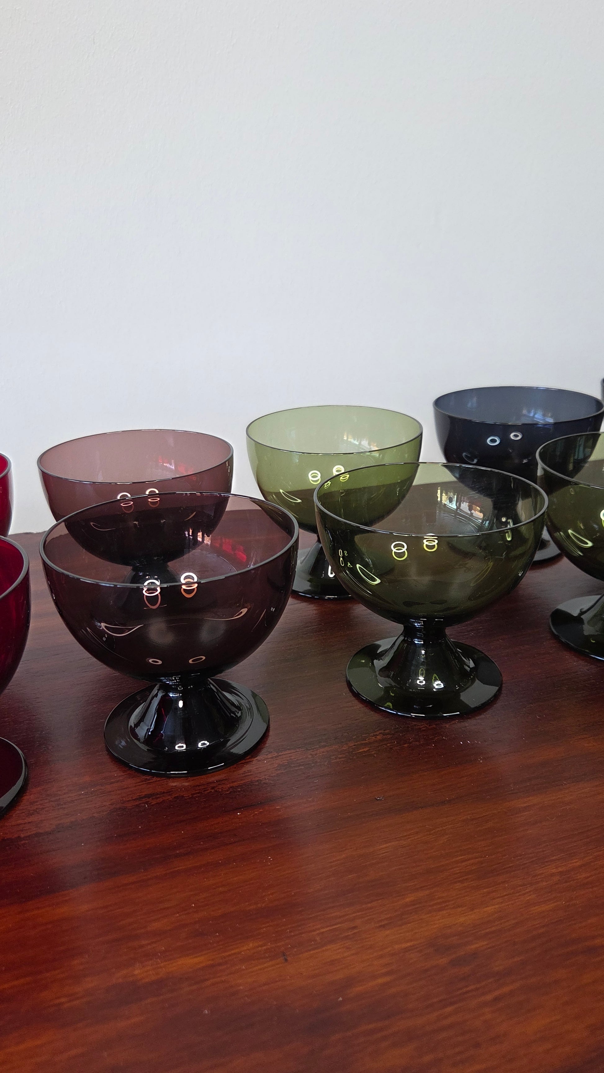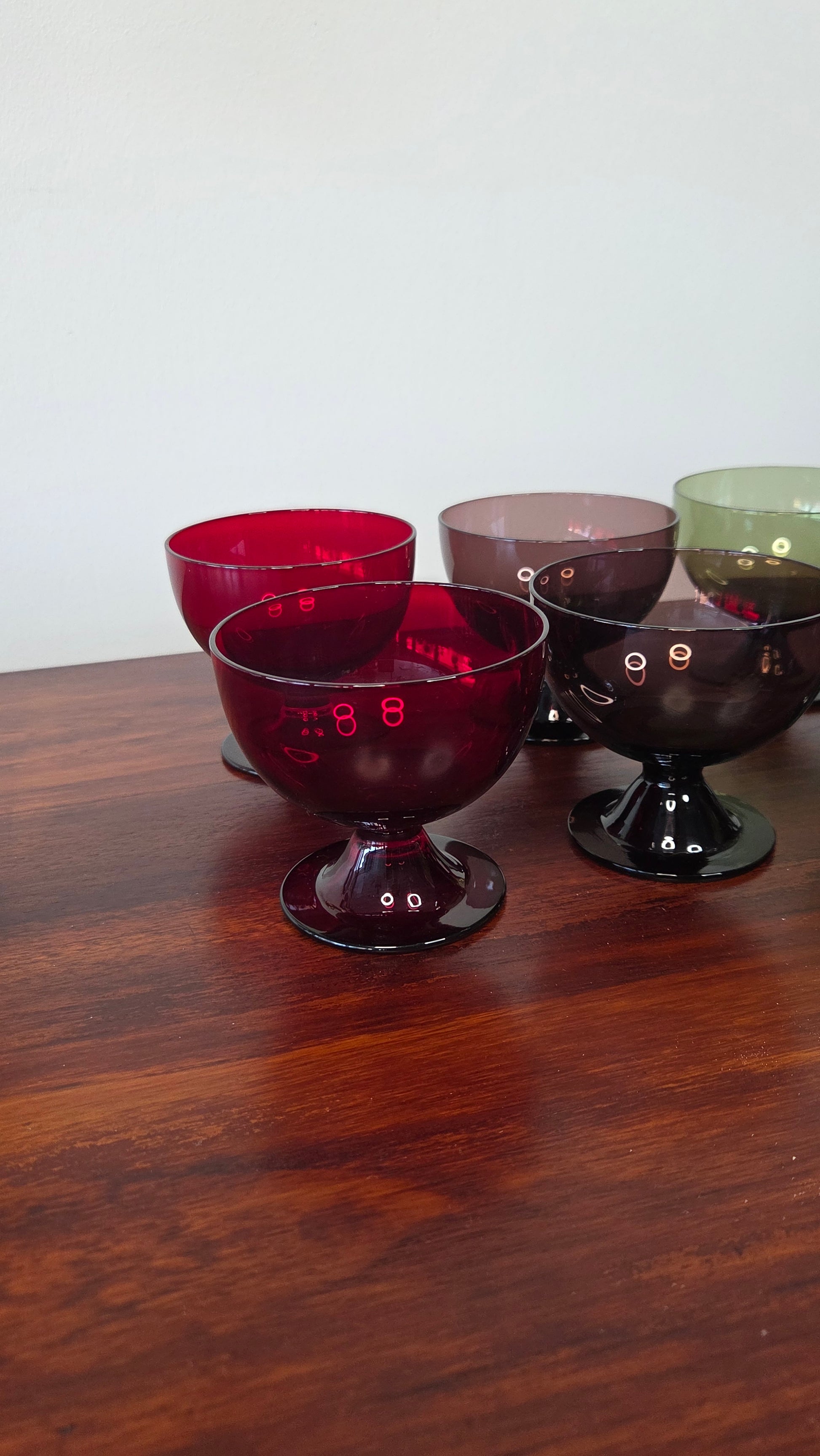 Tyylikäs 50–60-luvun design, joka toimii upeasti kattauksessa, jälkiruoille, jäätelölle tai vaikka pähkinäkulhona. Värit hehkuvat kauniisti valoa vasten ✨