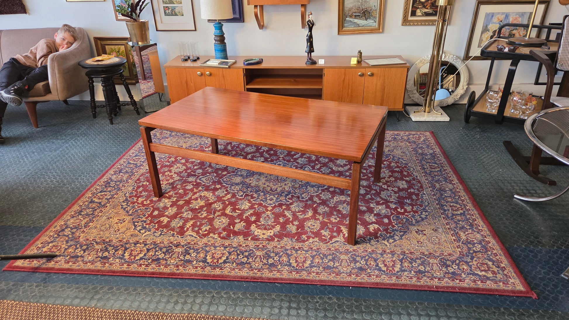 Tyylikäs vähän erilainen vintage sohvapöytä. Kiiltäväksi lakattu kansi.