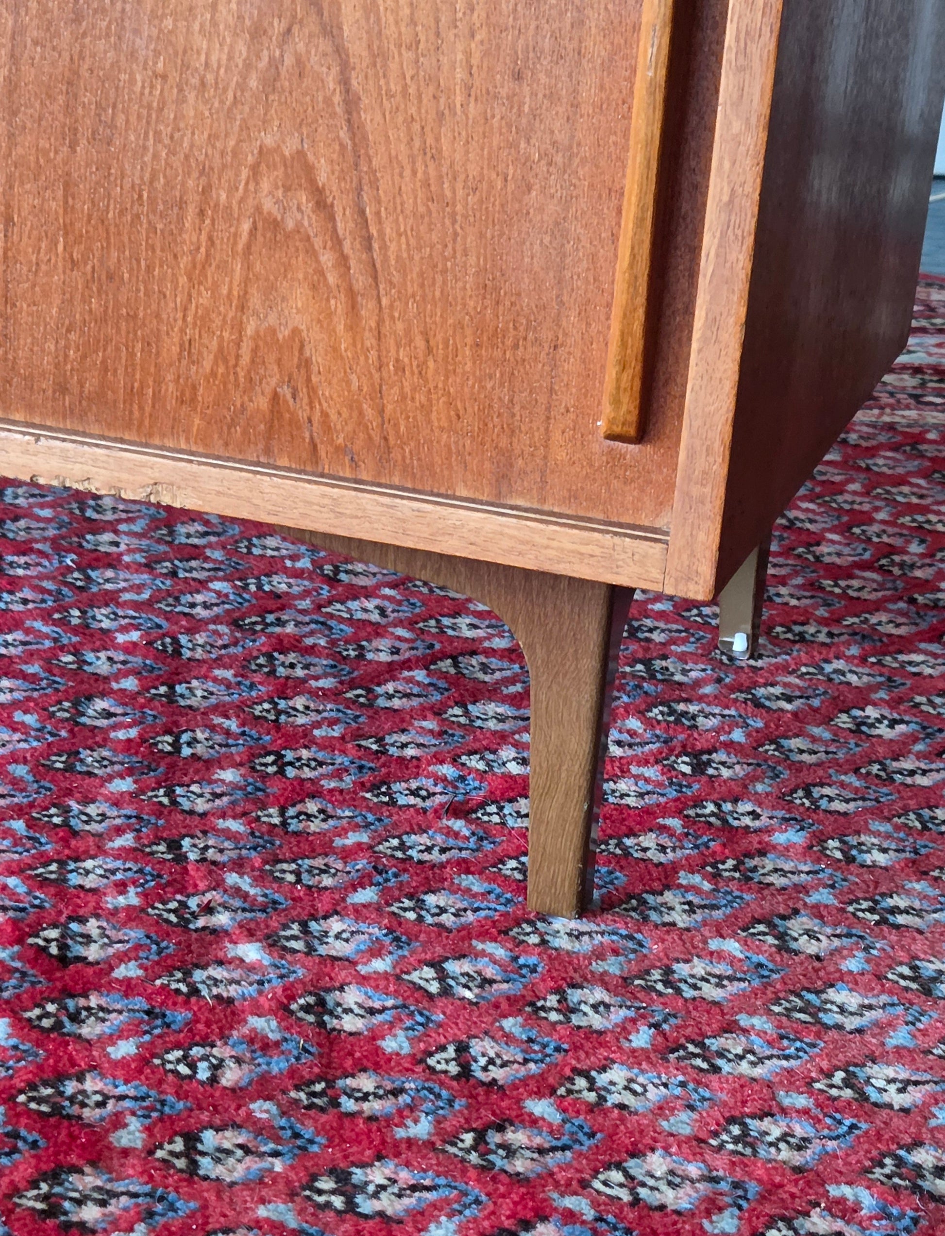 Tyylikäs ja ajaton teak-liukuovikaappi 1960-luvun hengessä.
